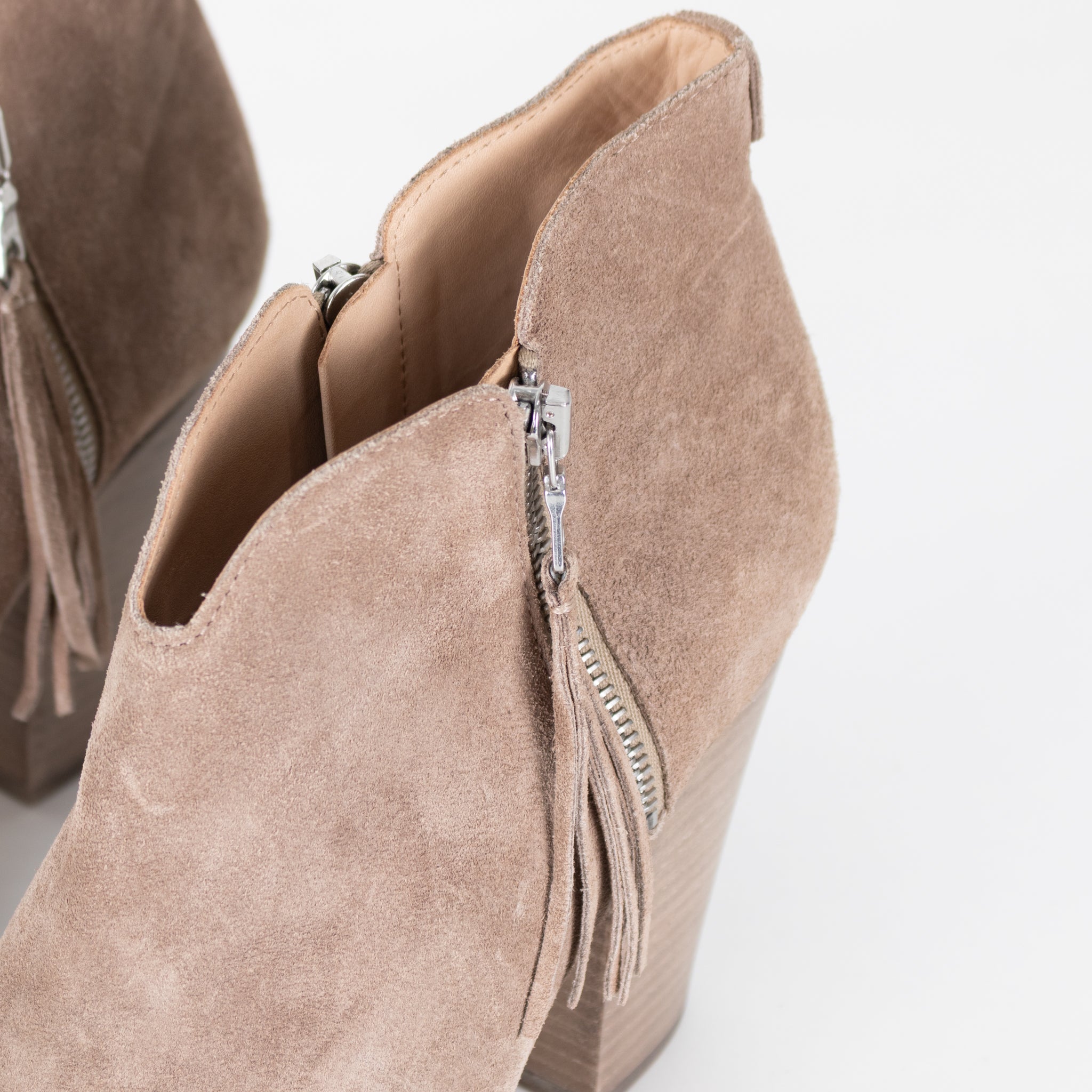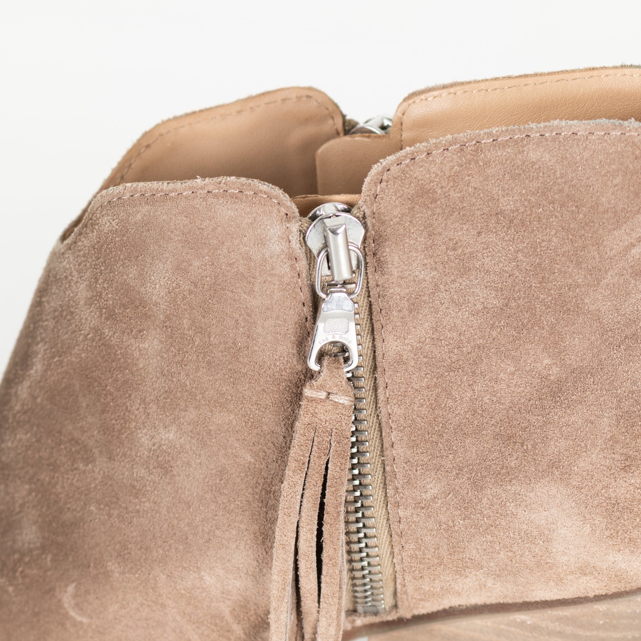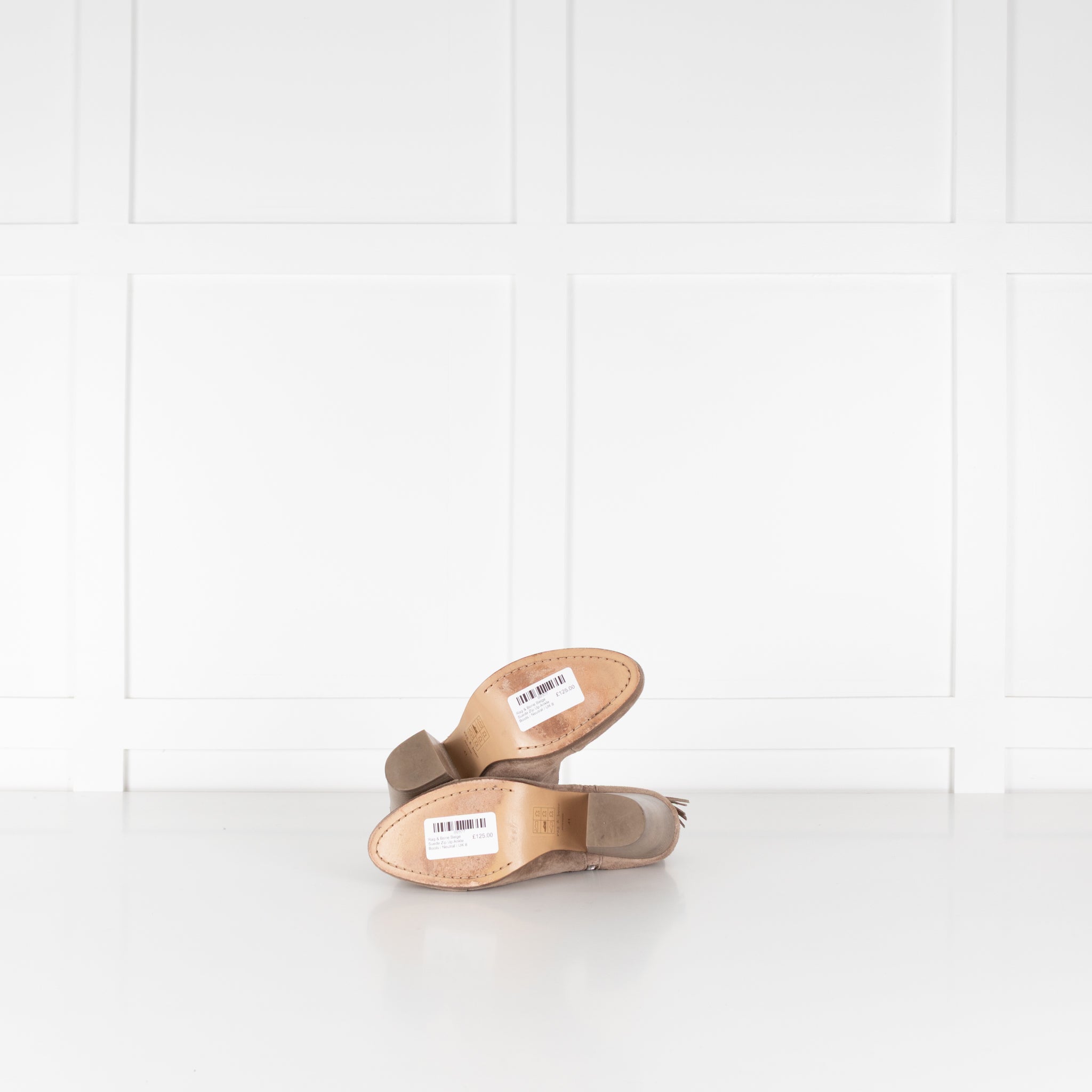 Rag & Bone beige suede zip up ankle boots with tassel detail. Featuring a heel height of 9cm.