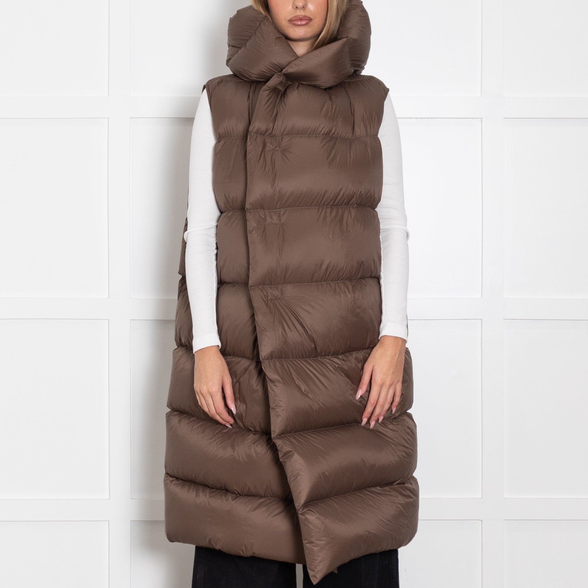 Rick Owens Brown Sleeveless Puffa Coat