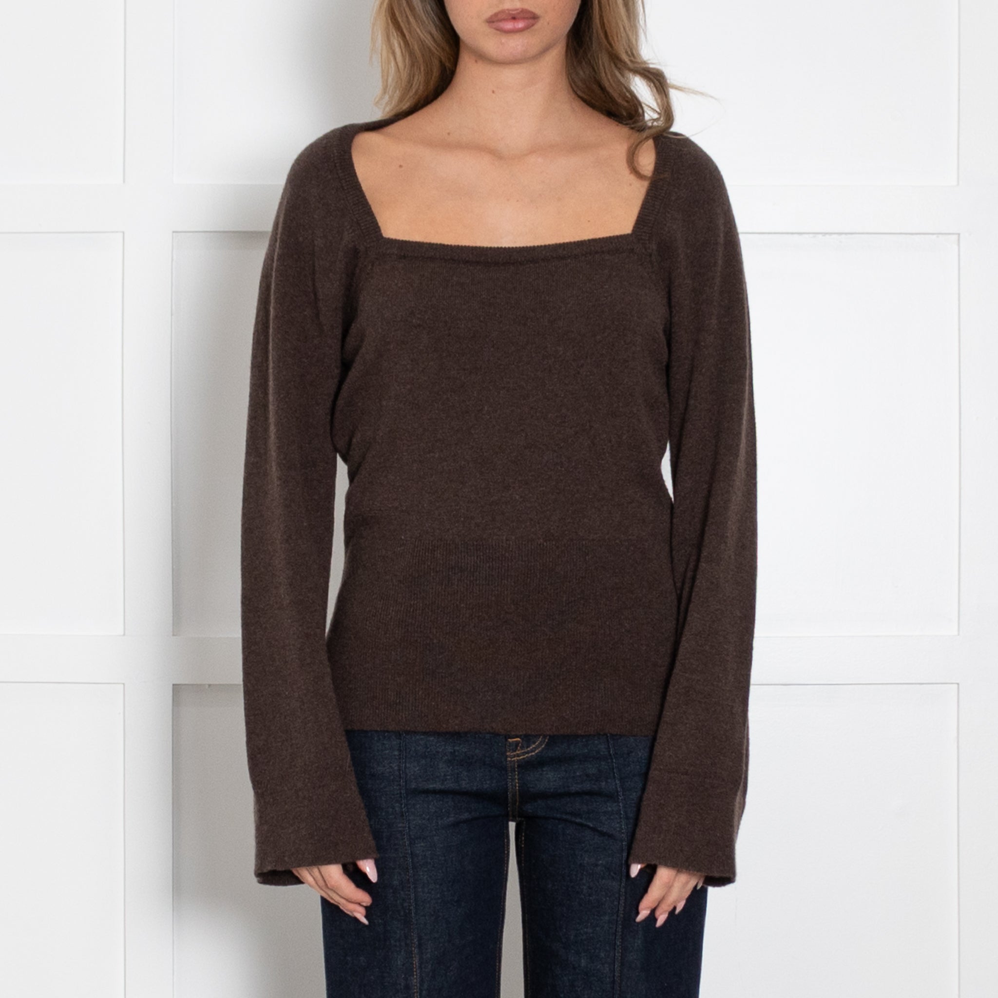 Wiggy Kit Brown Cashmere Square Neck Sweater