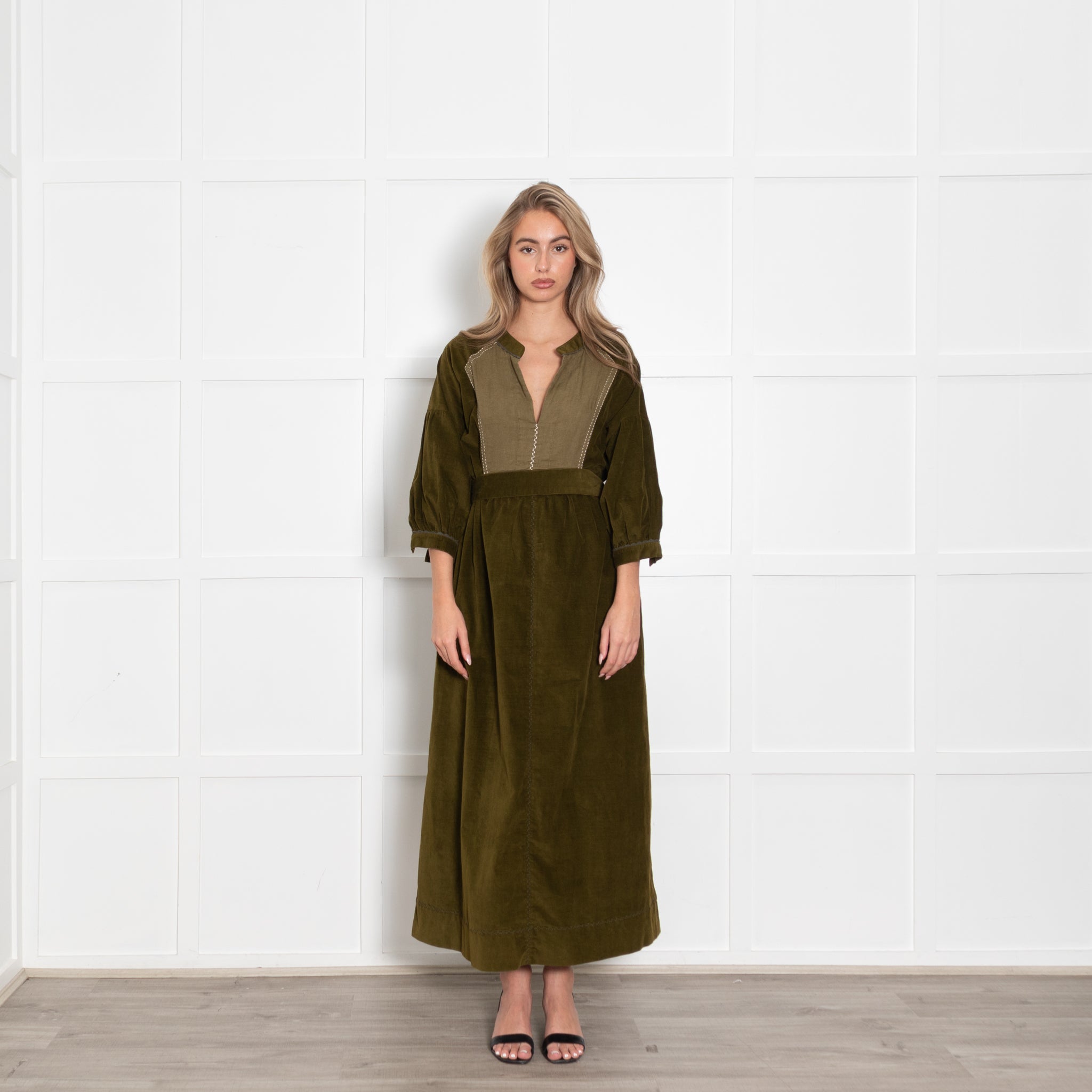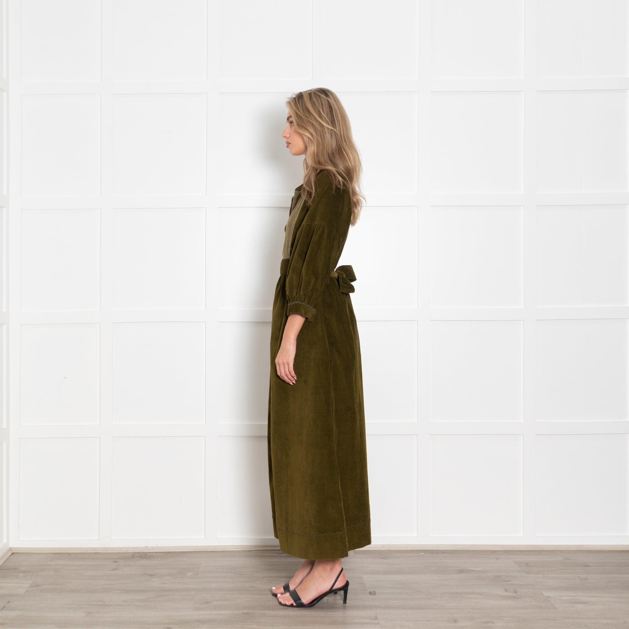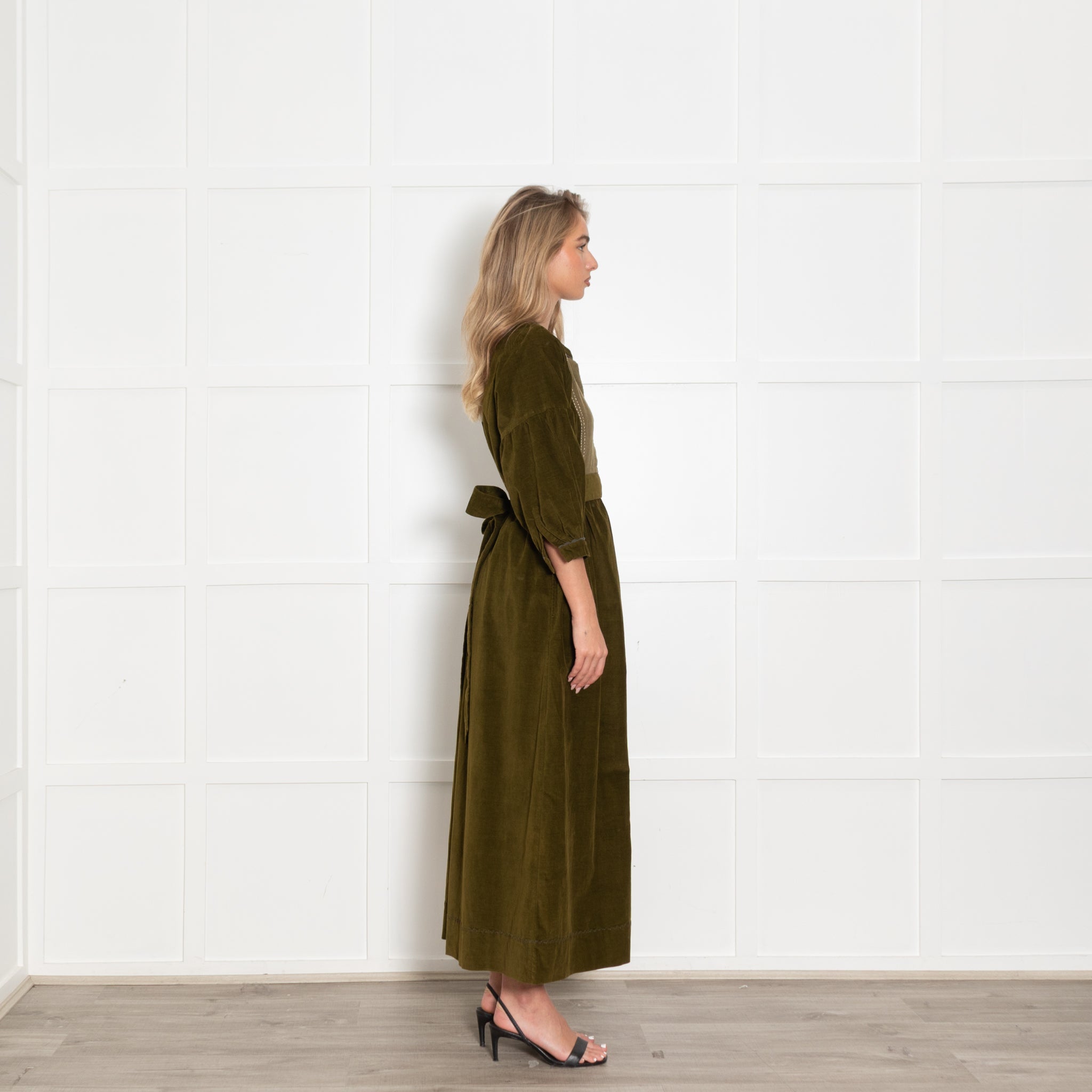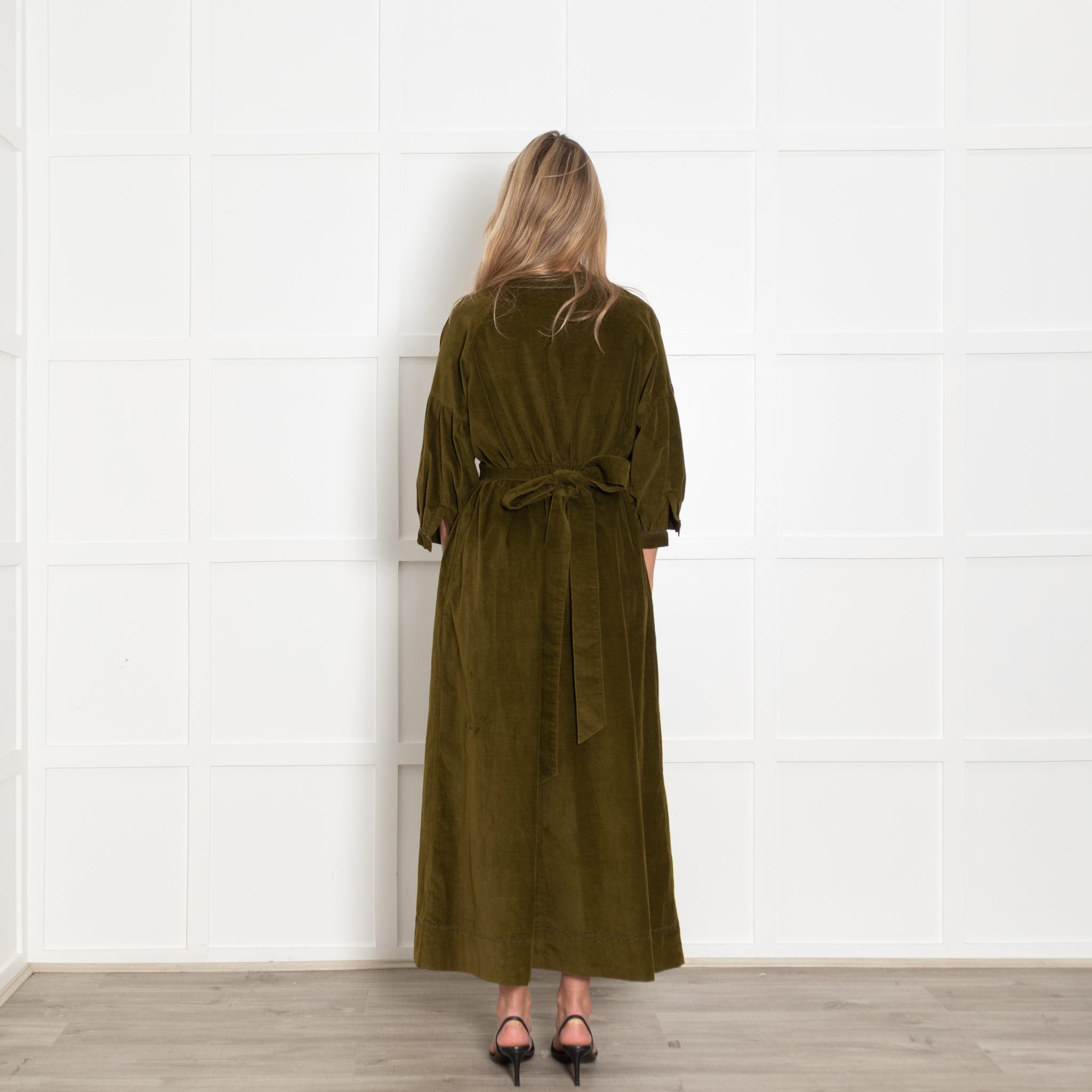 Wiggy Kit Olive Pin Cord Belted Maxi Dress