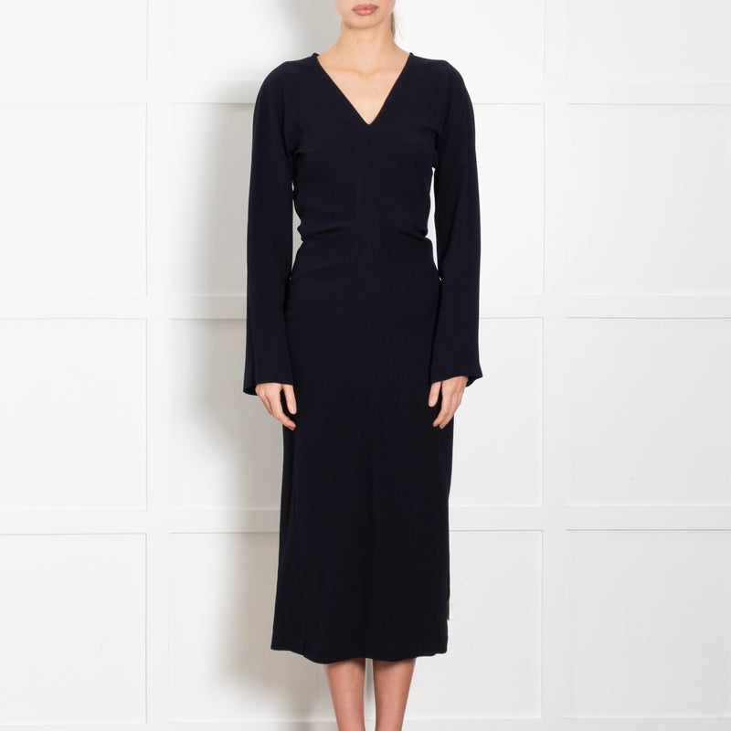 Raey Navy Blue Crepe Asymetric Long Sleeve Dress