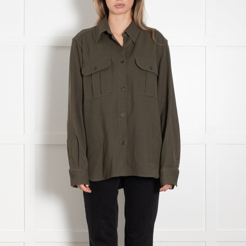 Raey Khaki Wool Blend Military Style Shirt