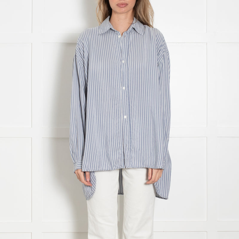 Raey Blue Pinstripe Silk Oversized Shirt