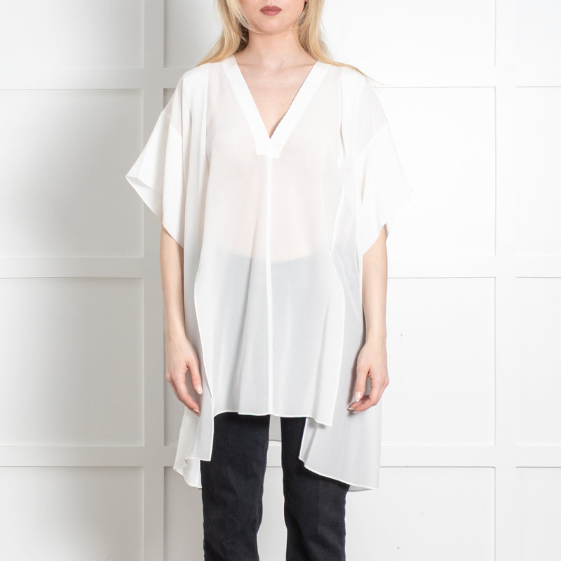 Raey Ivory Silk Split Seam Short Sleeve Oversized Tunic Top
