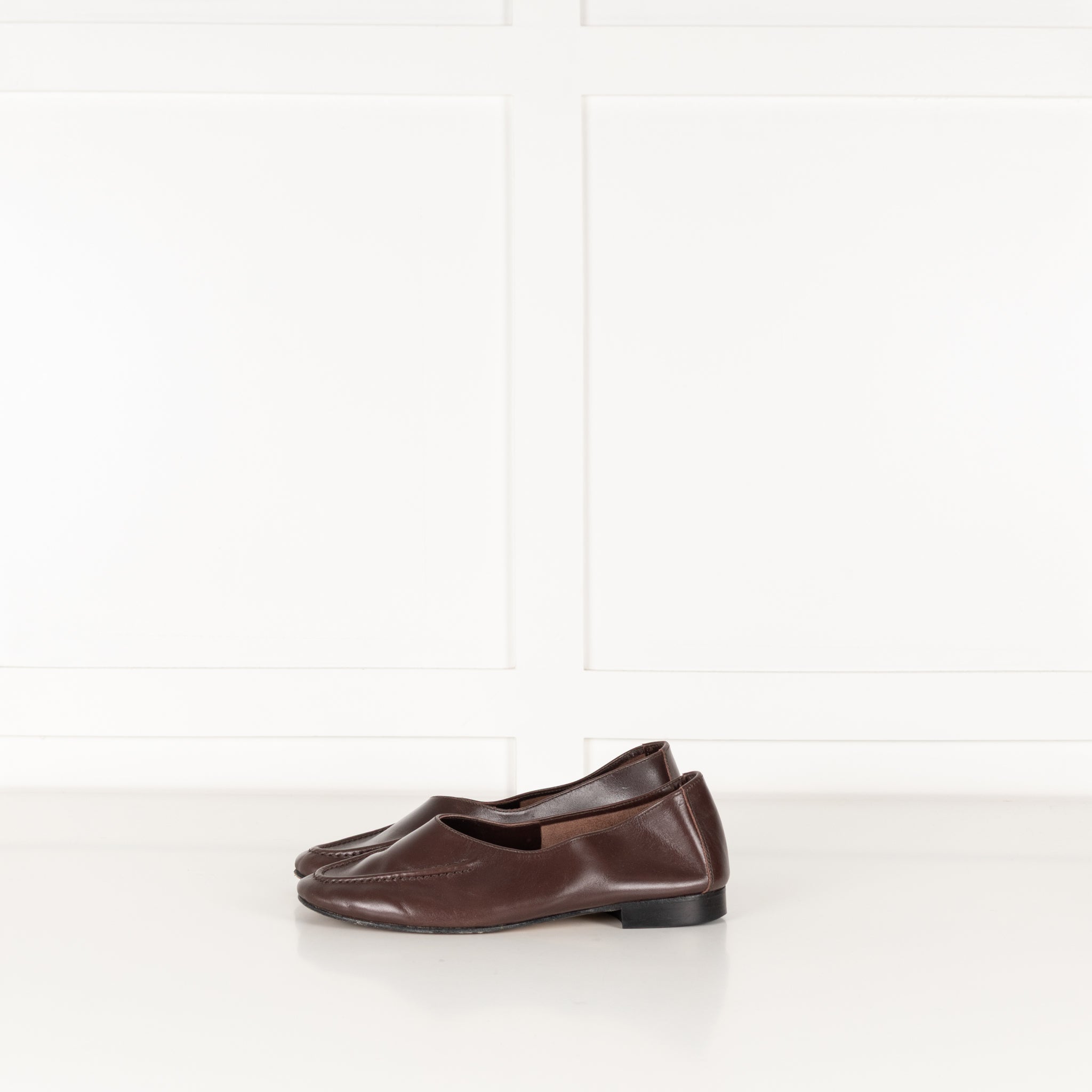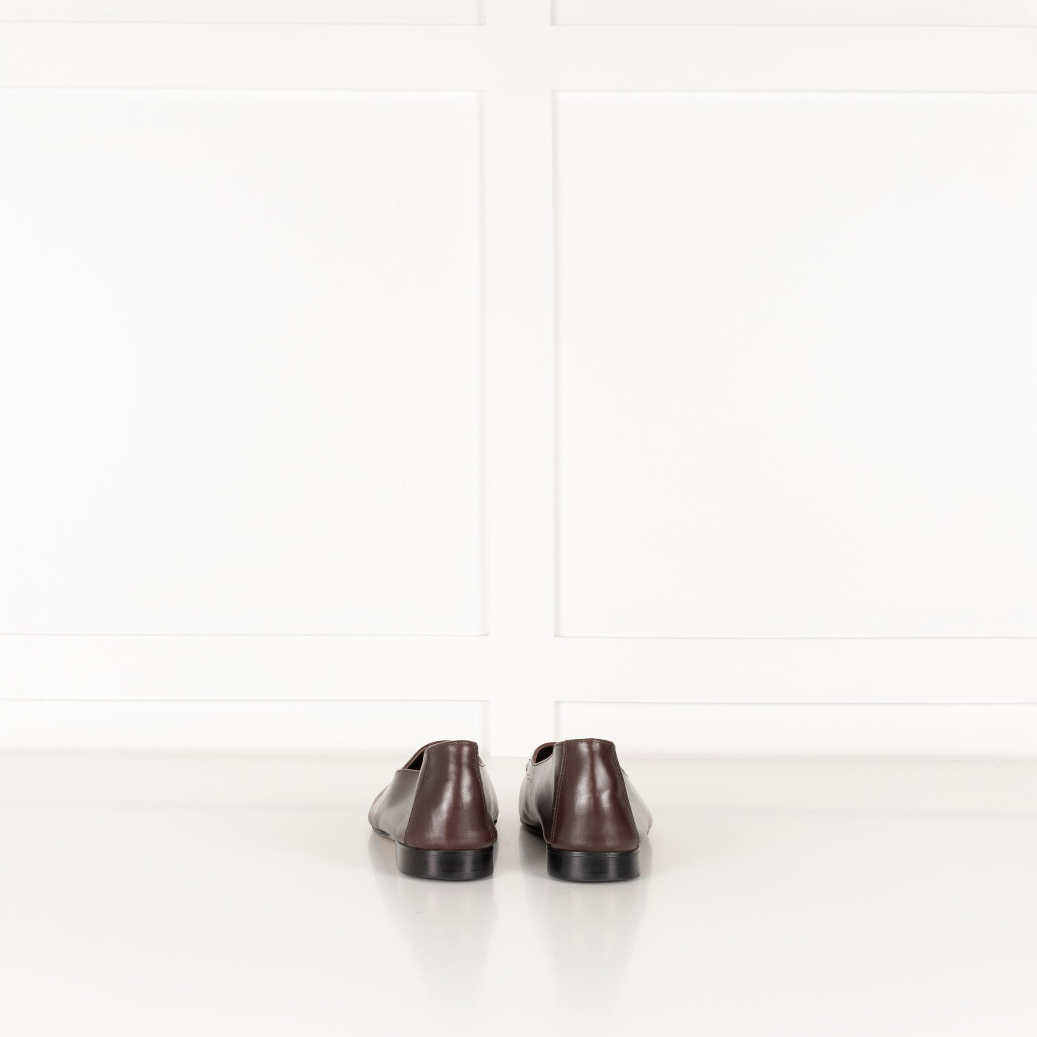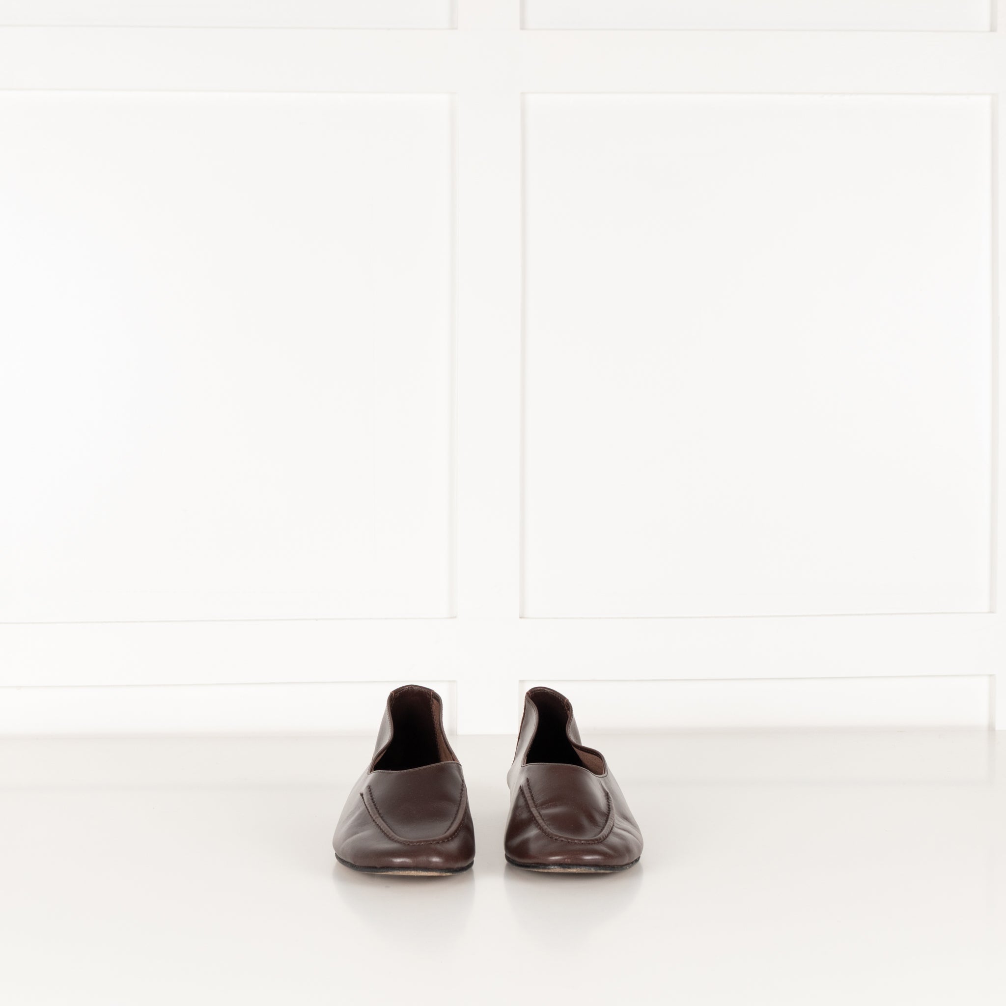 Hereu brown flat shoes, crafted with a stunning leather fabric, featuring a small 1.5cm pump sole, a rounded toe, with stunning embroidered hems, and a brown interior lining.
