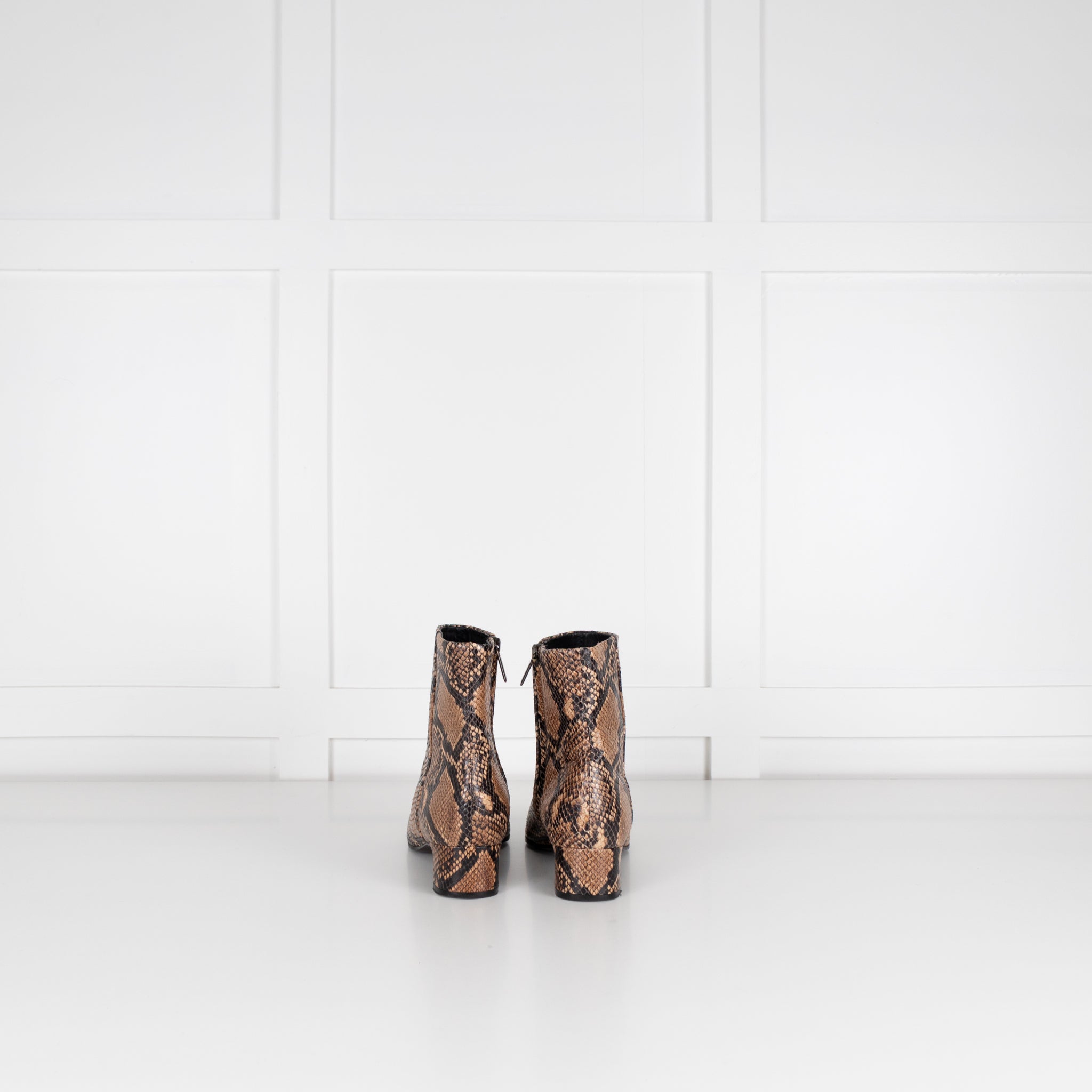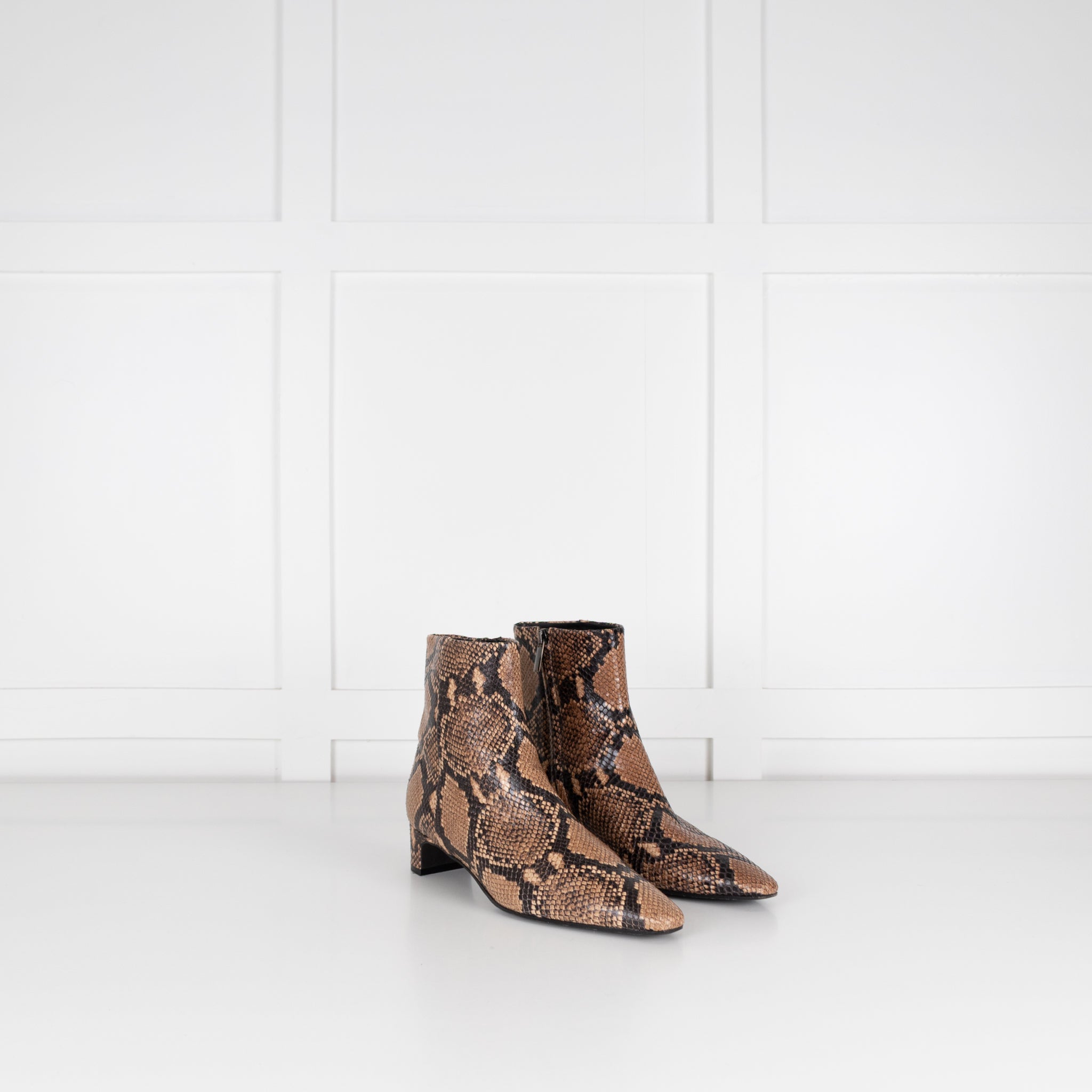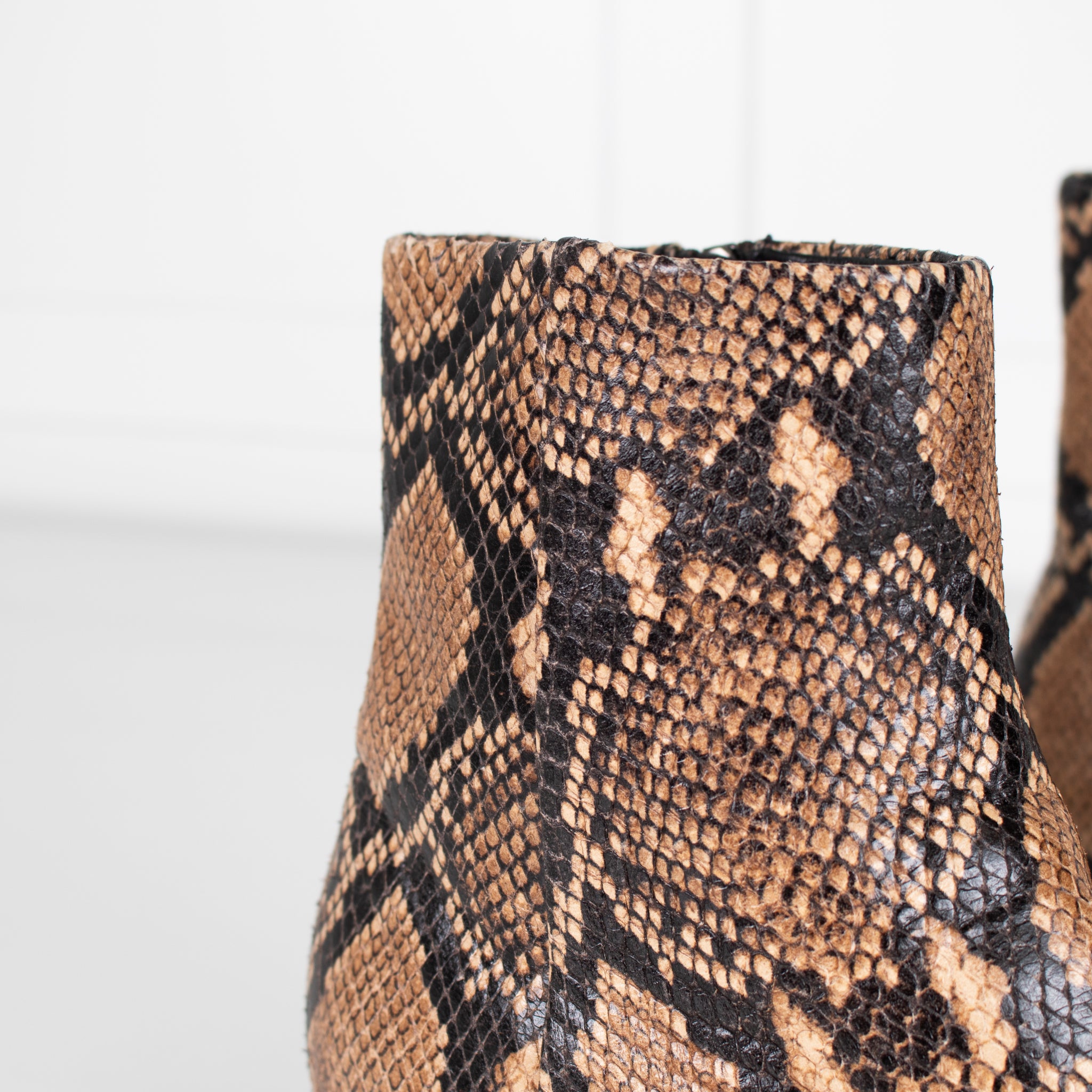 Me + Em brown and black snakeskin print ankle boots. With a block heel of 3.5cm height.