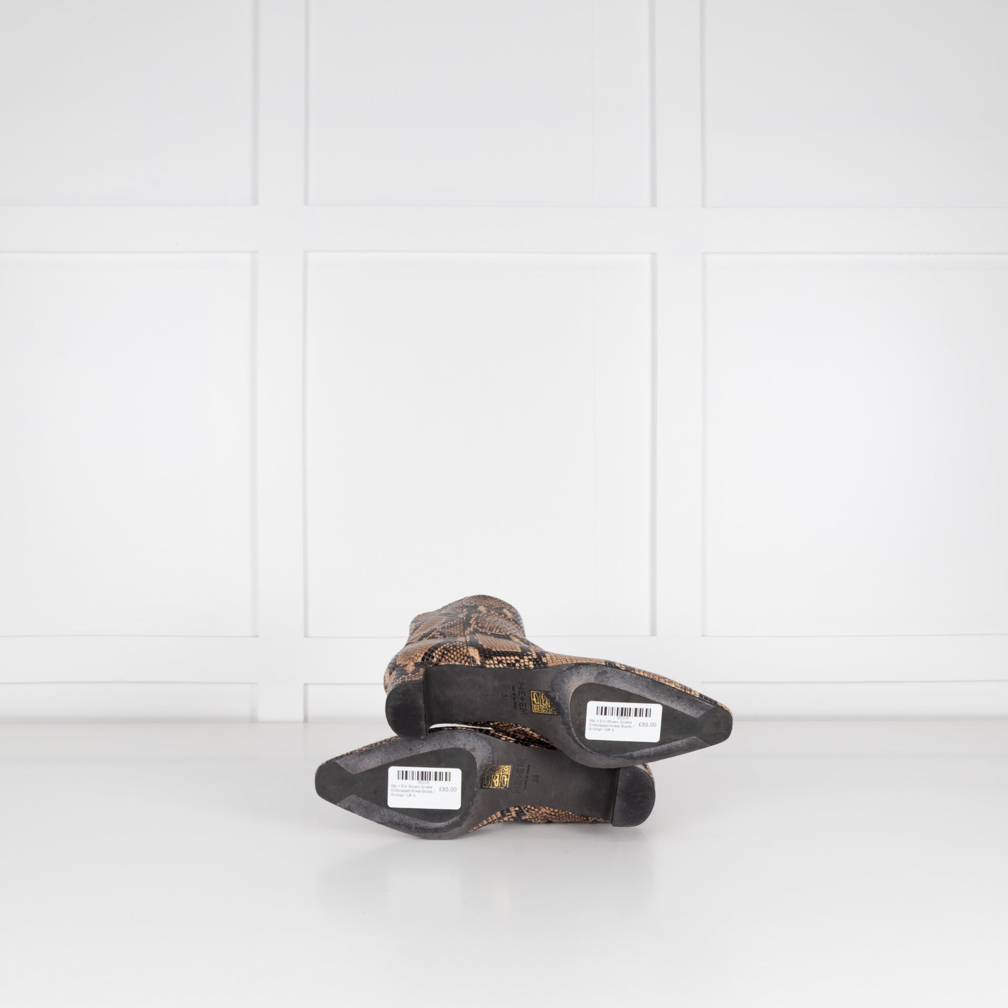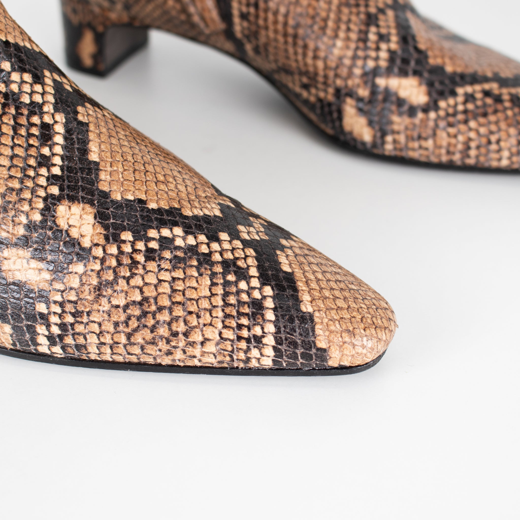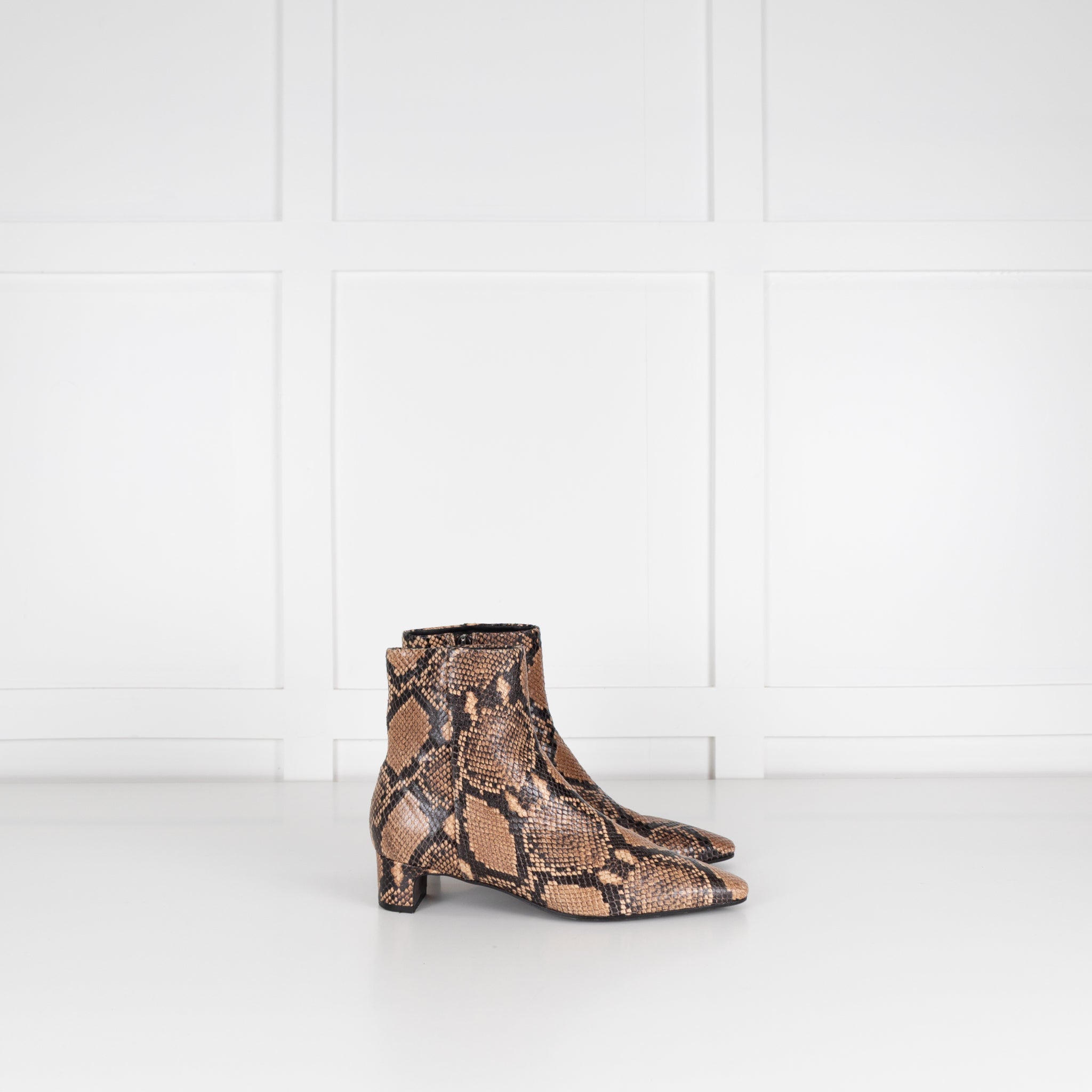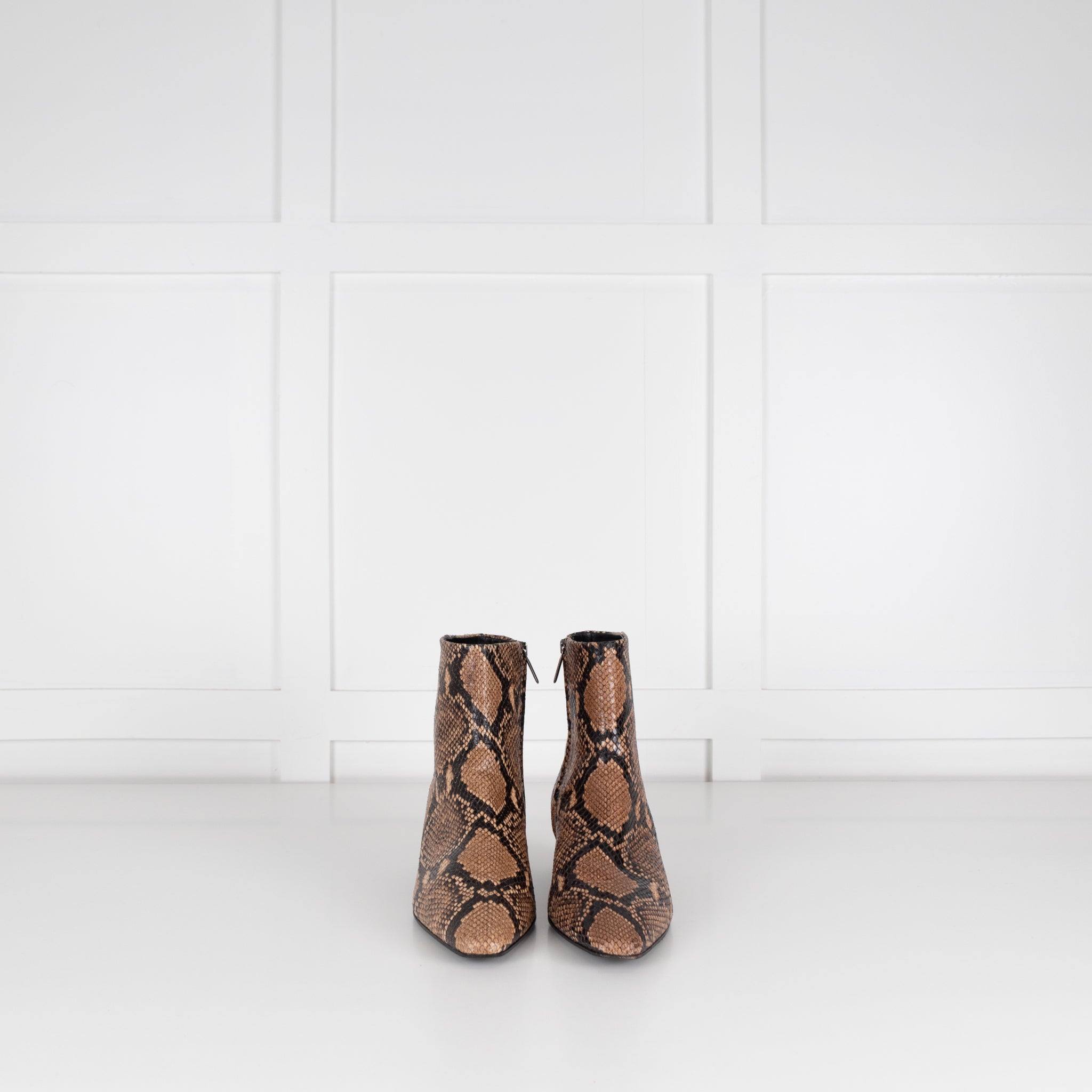 Me + Em brown and black snakeskin print ankle boots. With a block heel of 3.5cm height.