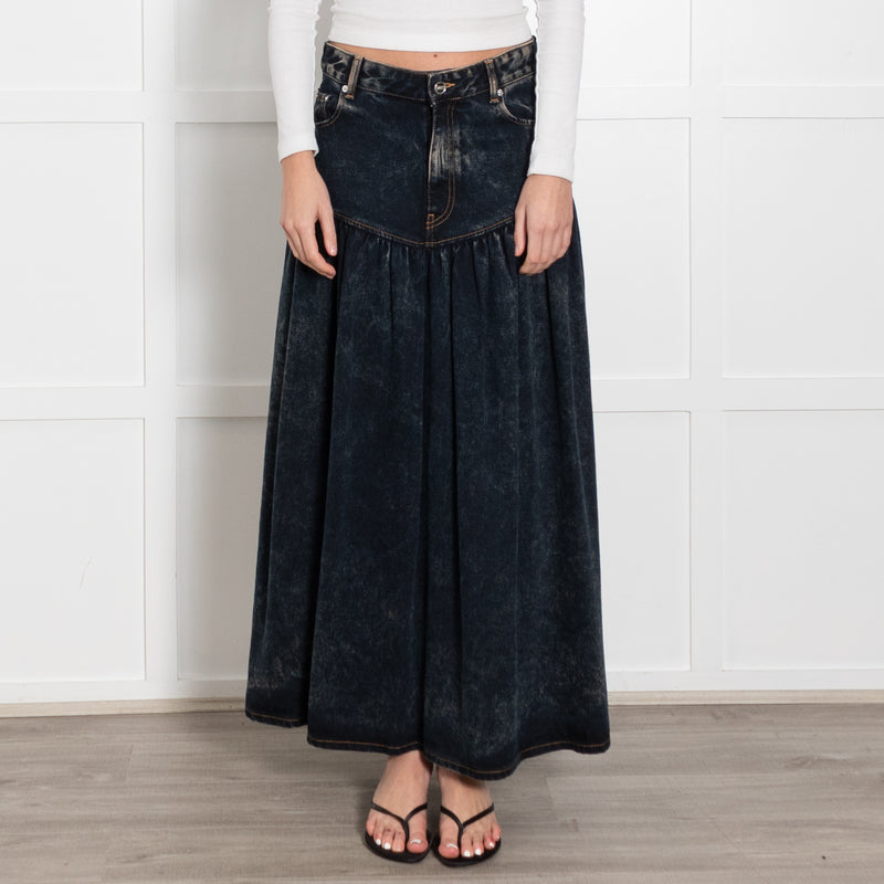 Ganni Dark Blue Stone Wash Denim Long Drop Waist Skirt