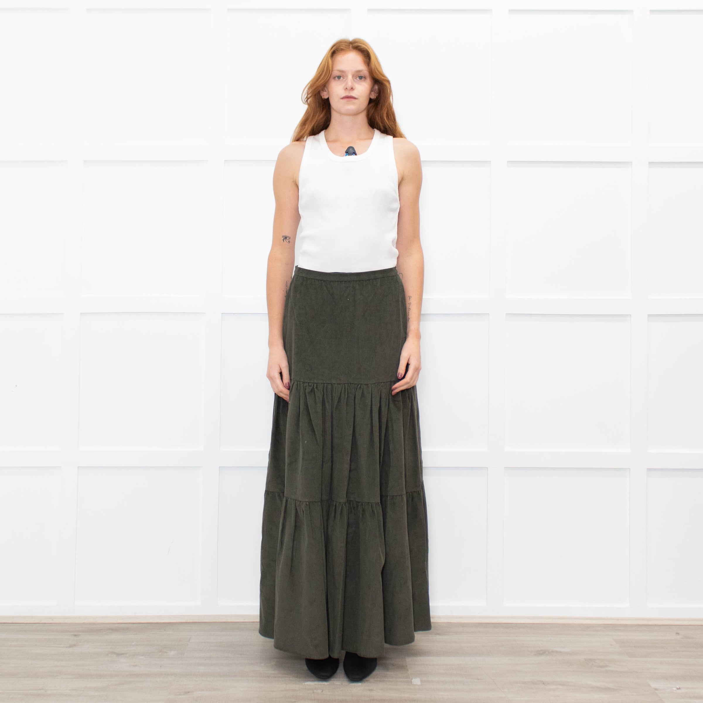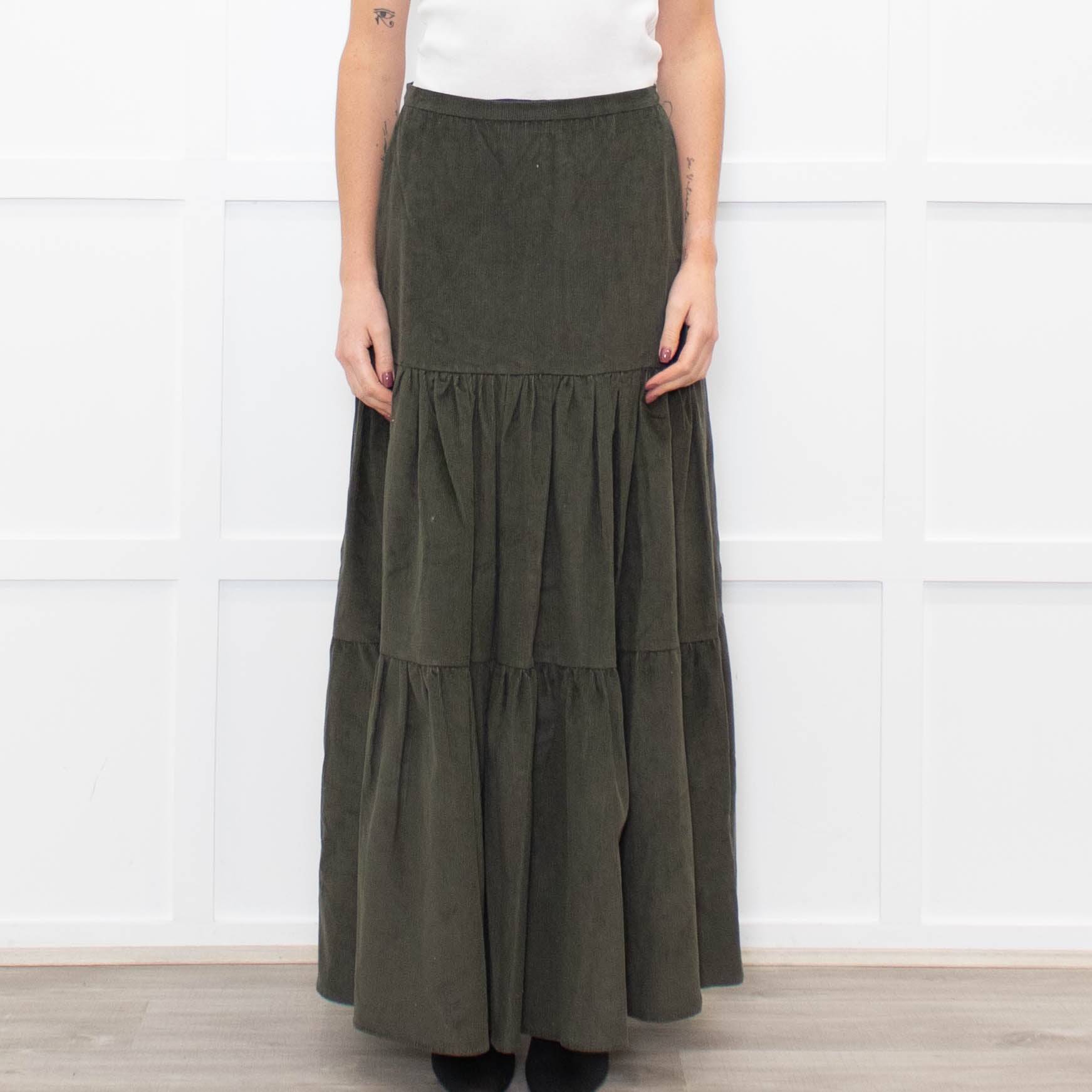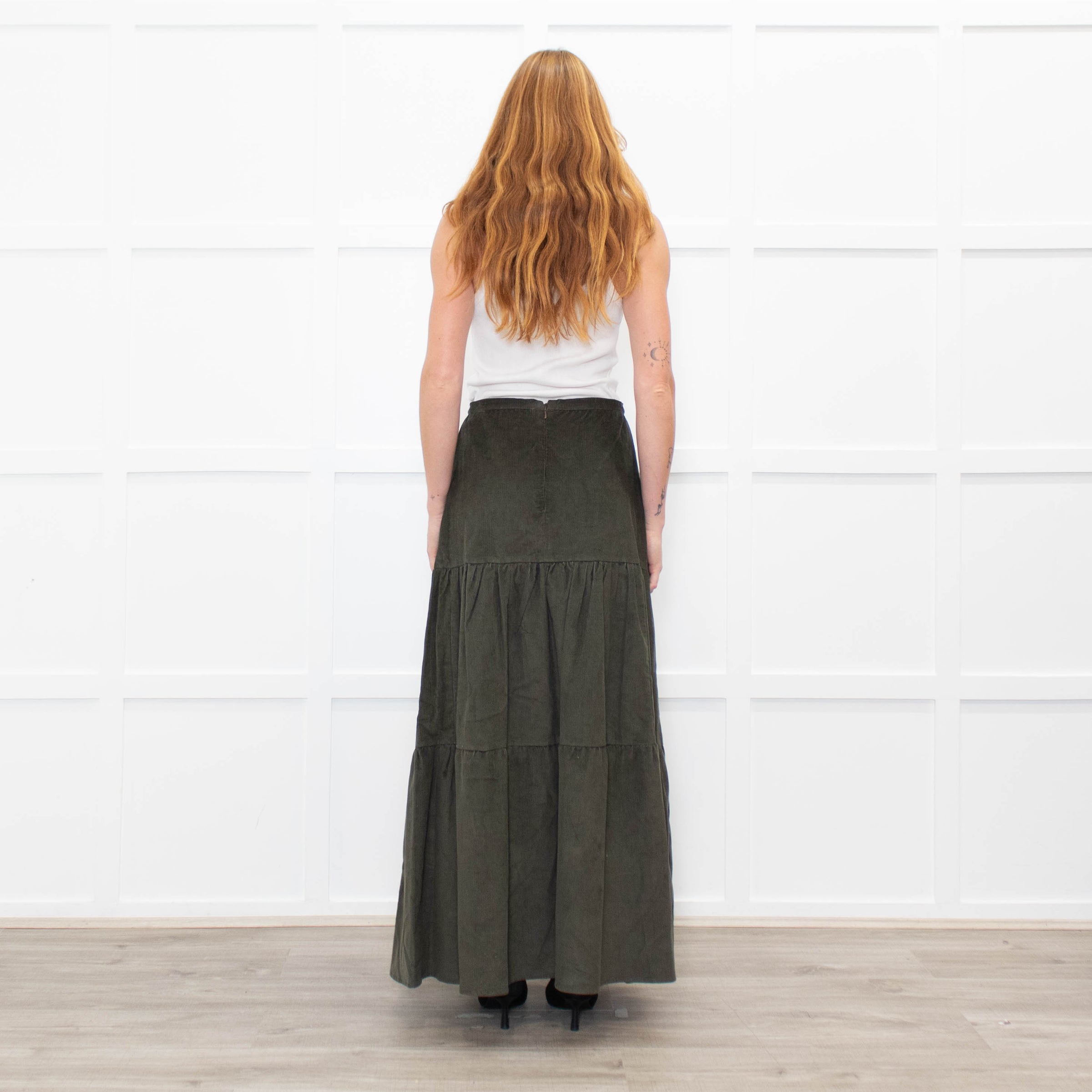 Ridley Khaki Corduroy Tiered Midi Skirt