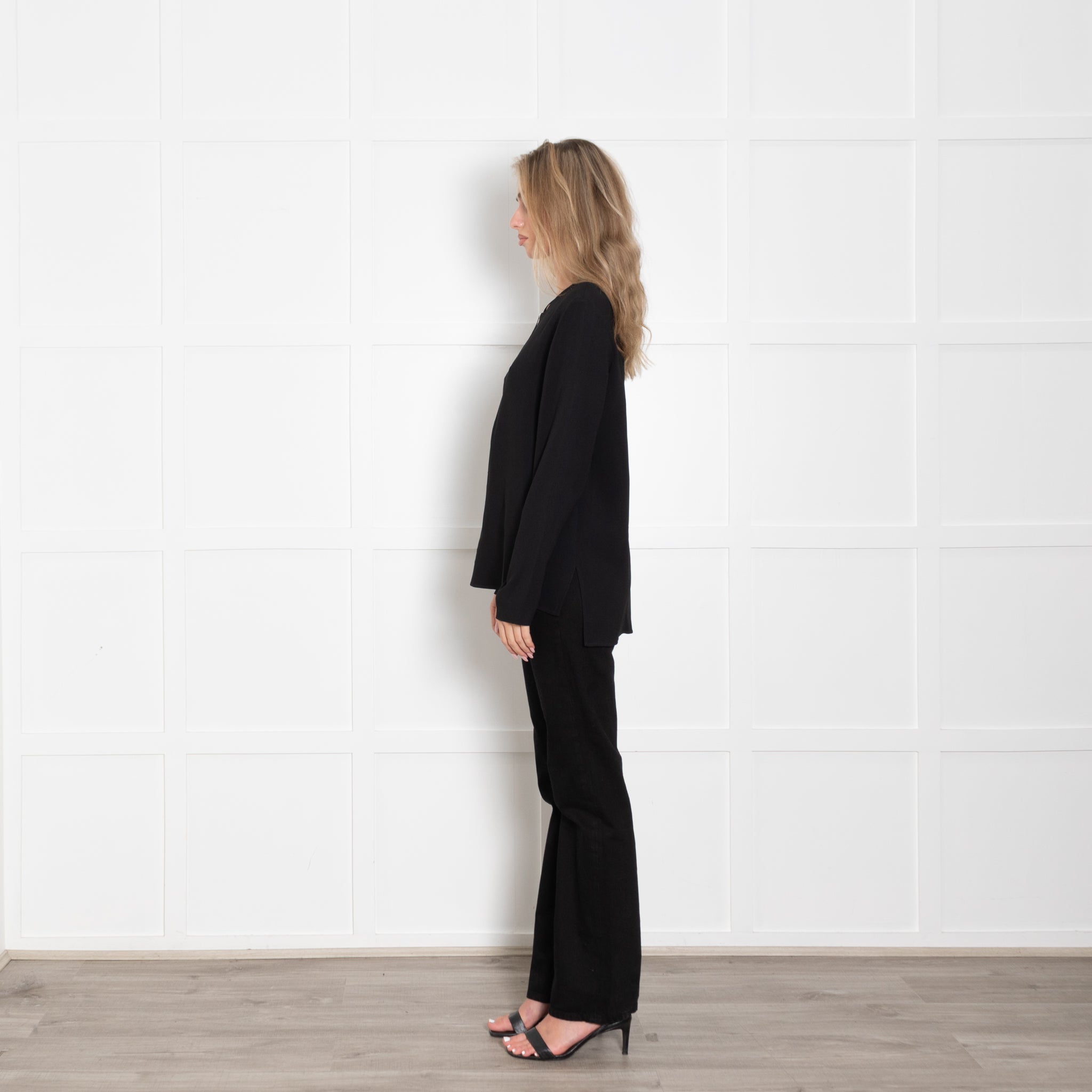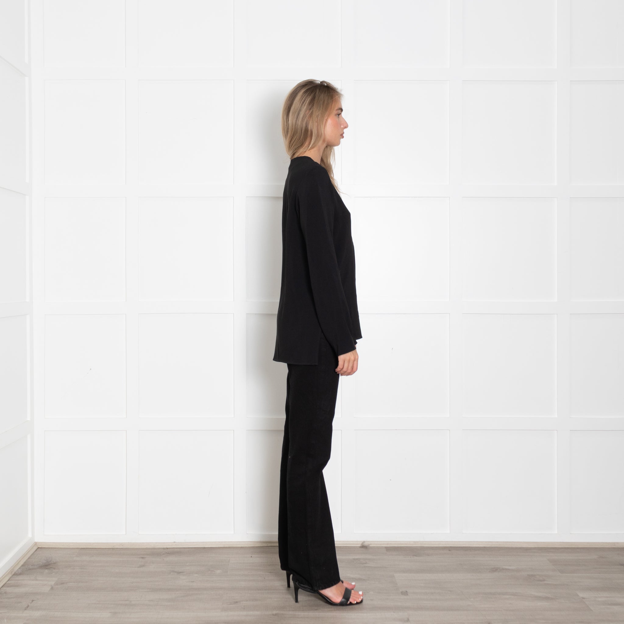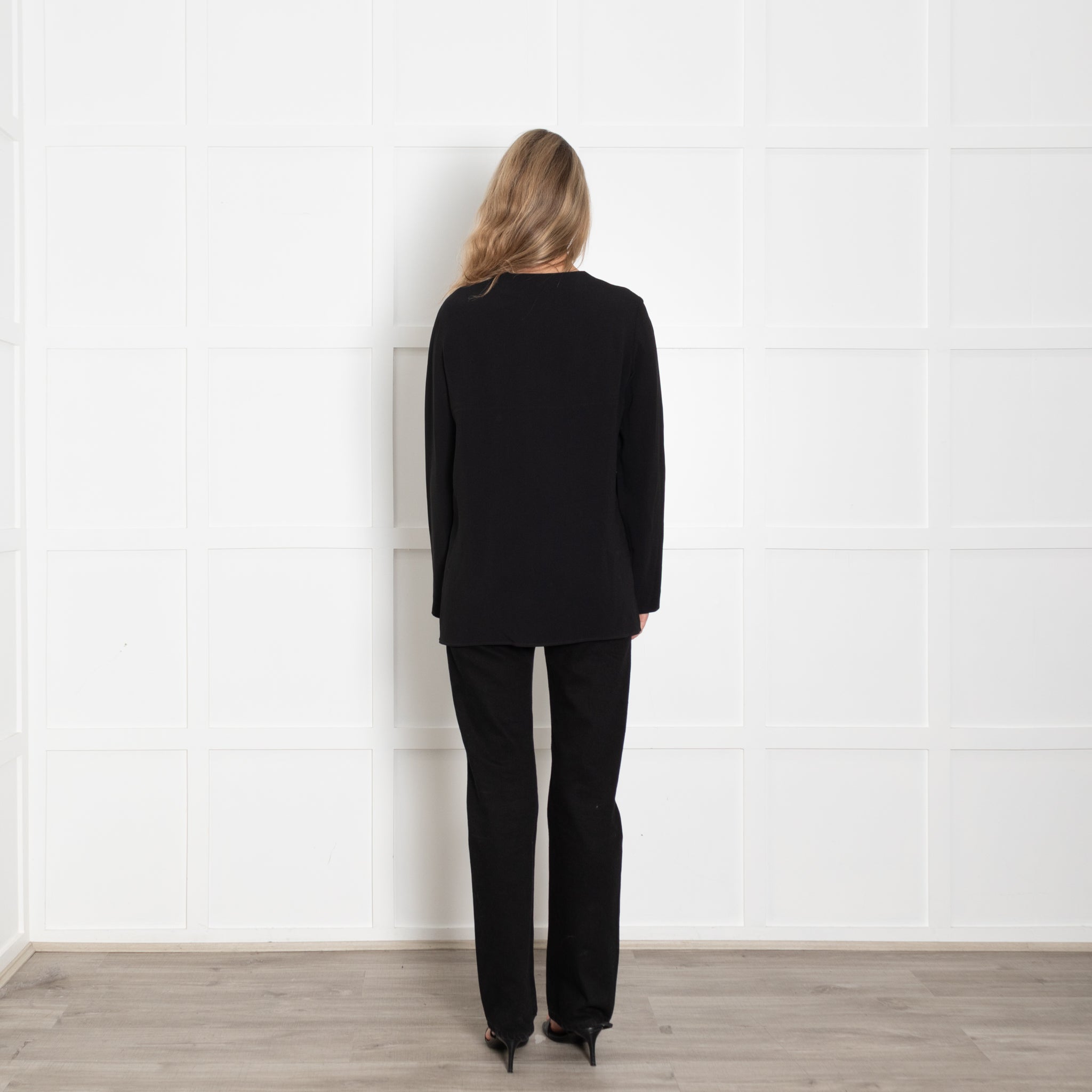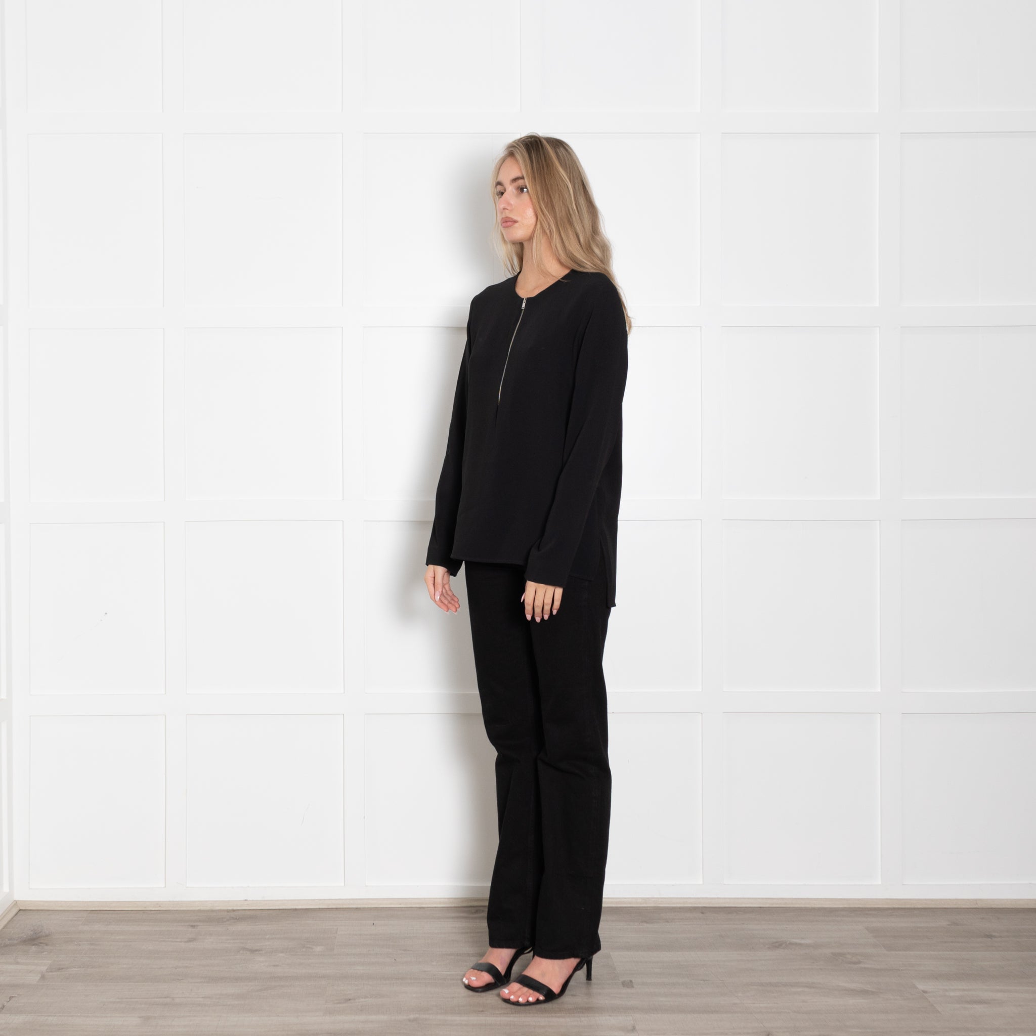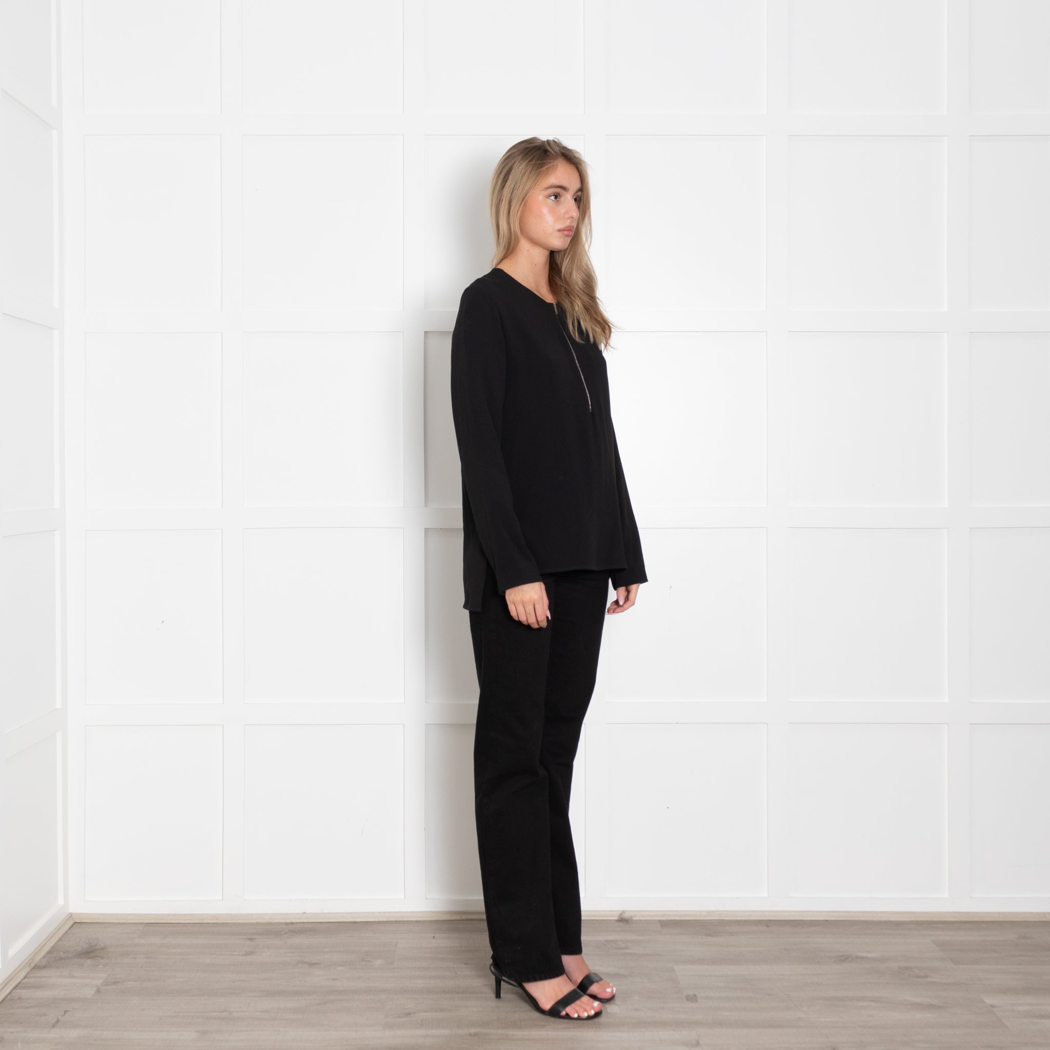 Stella McCartney black long-sleeve top, featuring a zip-up front design with silver hardware.