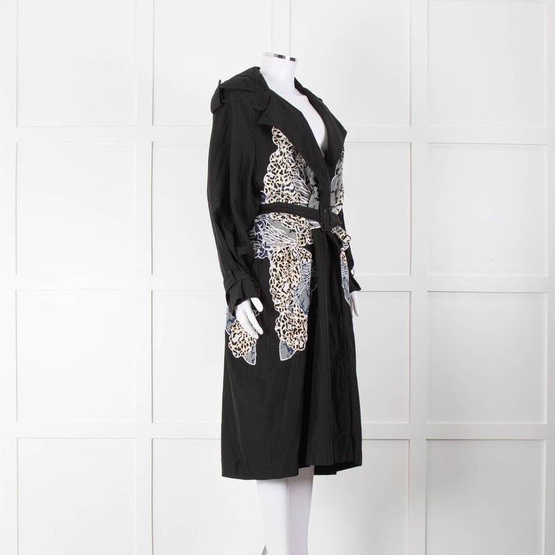 Stella McCartney Black Silk Embroided Leopard Pattern Trench Coat