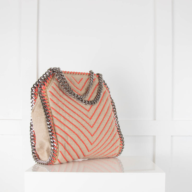 Stella McCartney Beige Linen Orange Stitching Small Falabella Bag