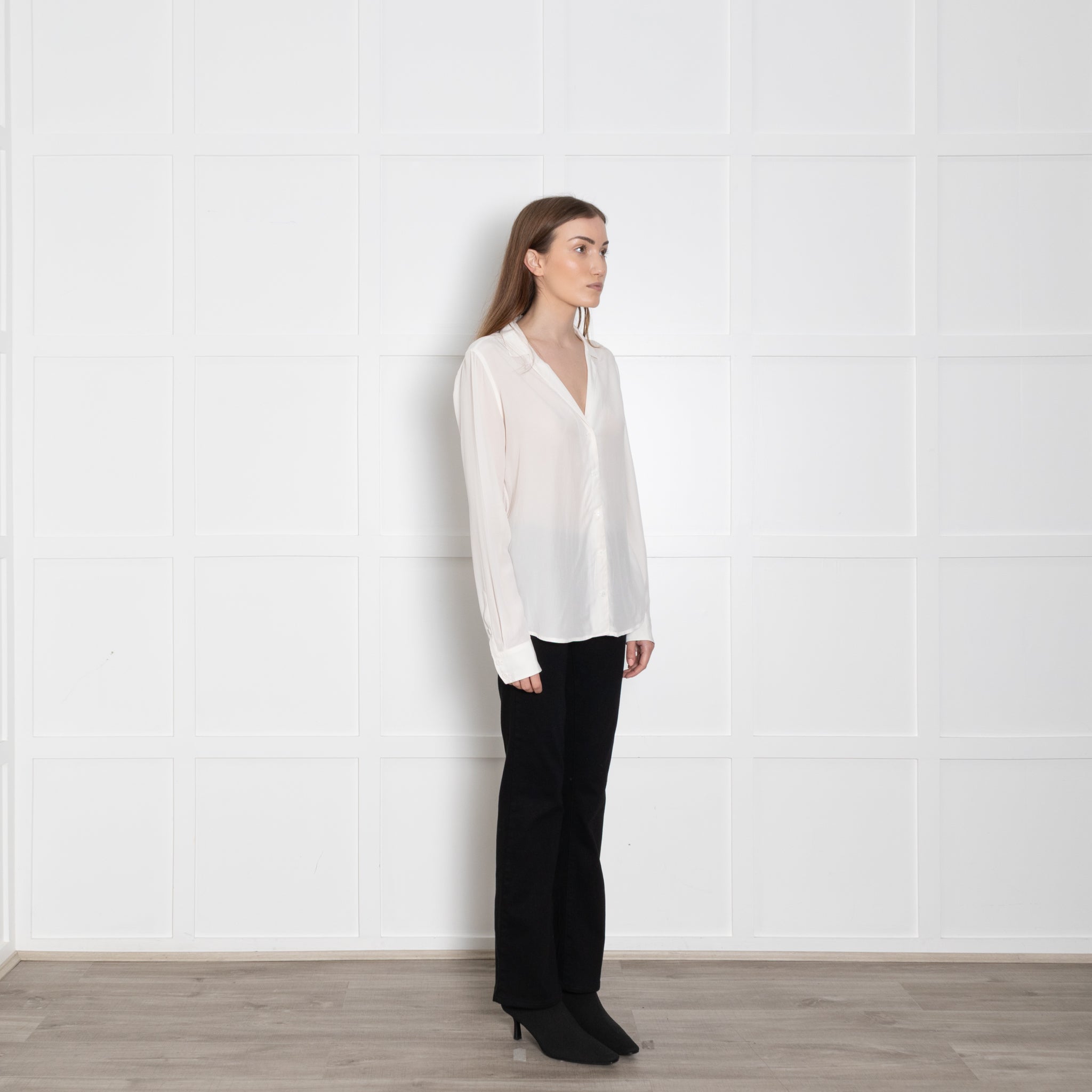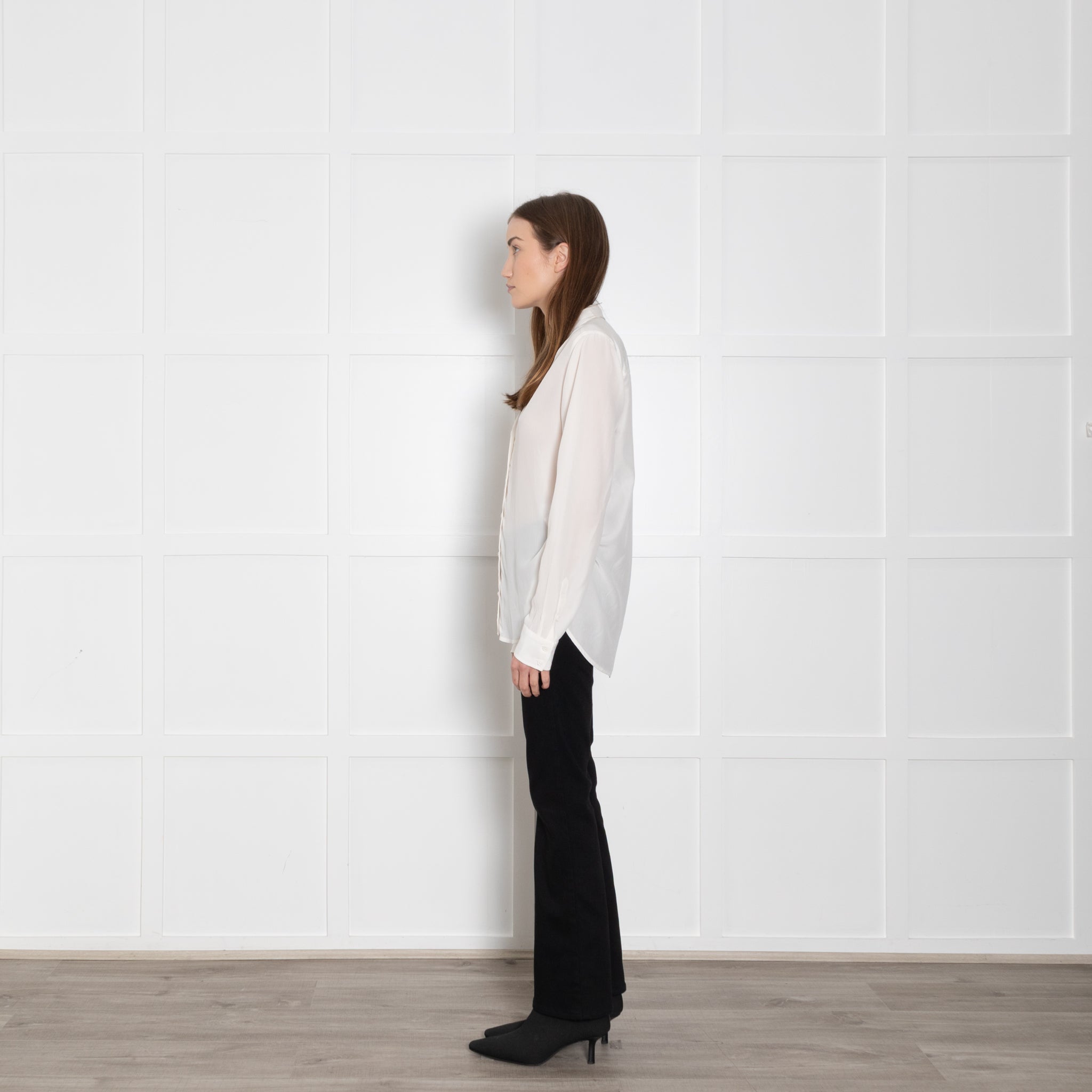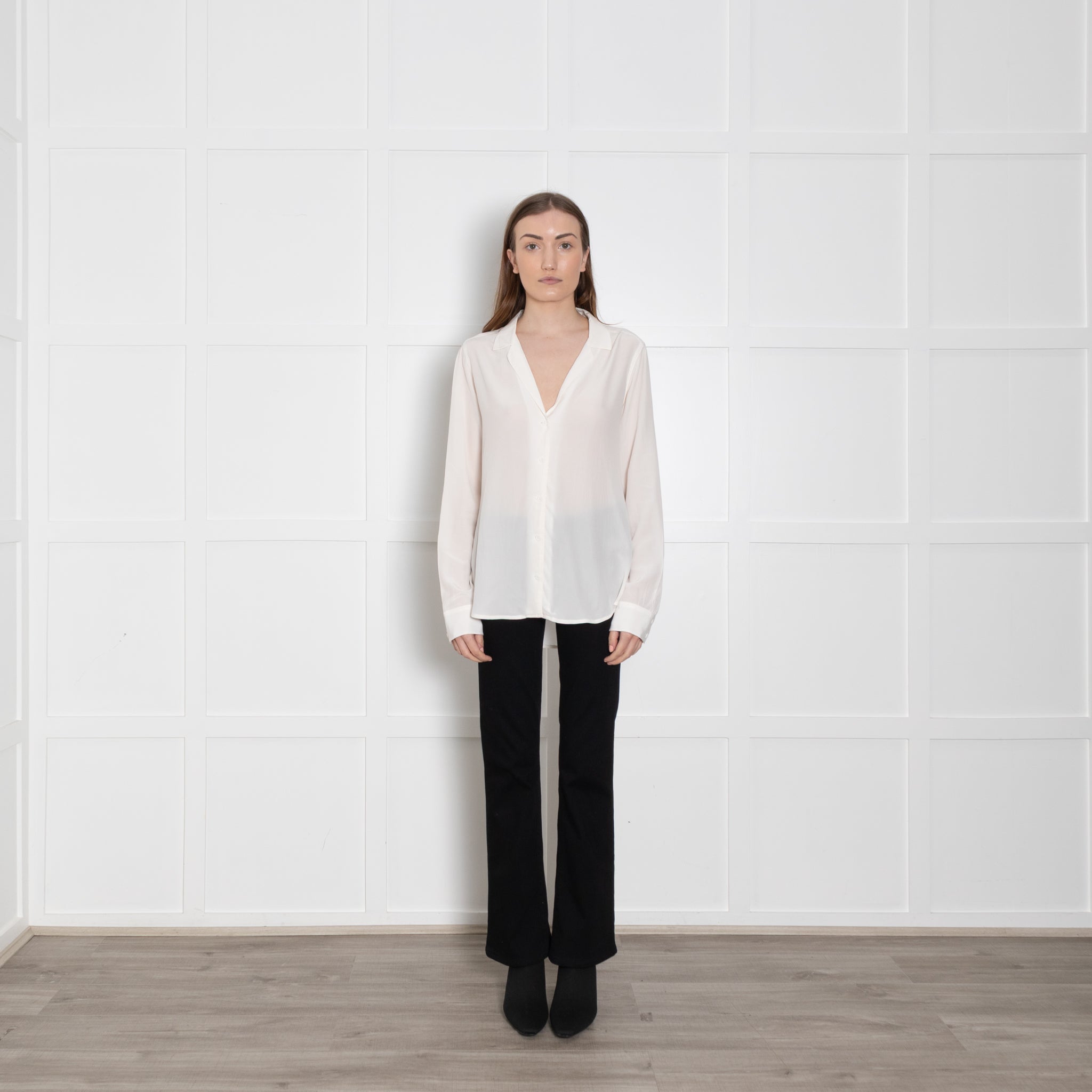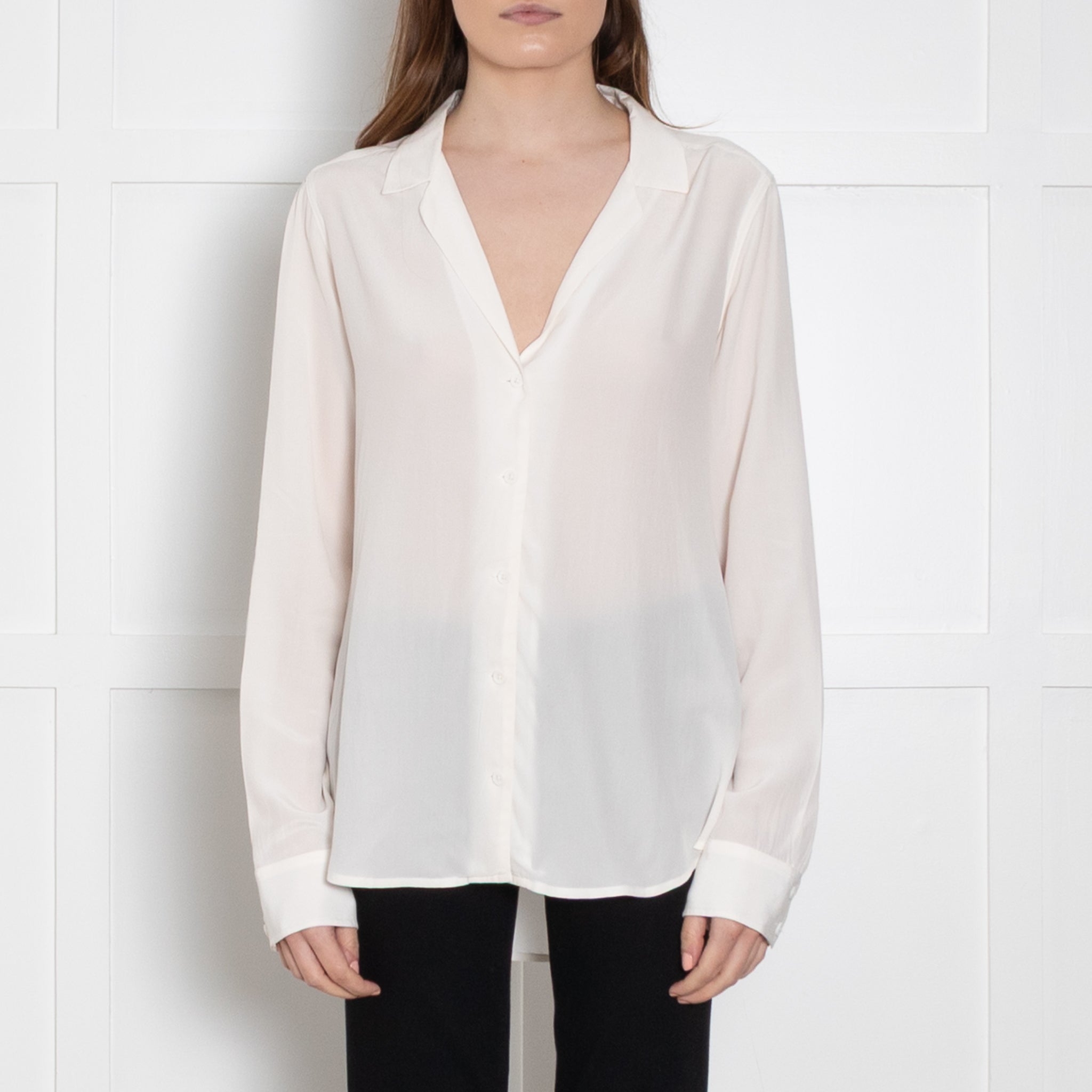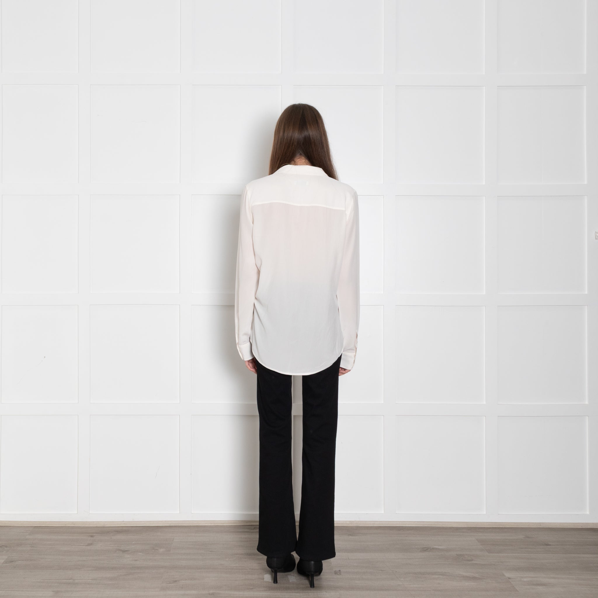 Equipment long-sleeve cream shirt, crafted with soft silk fabric, featuring a stunning classic collar and a button-up front closure design.