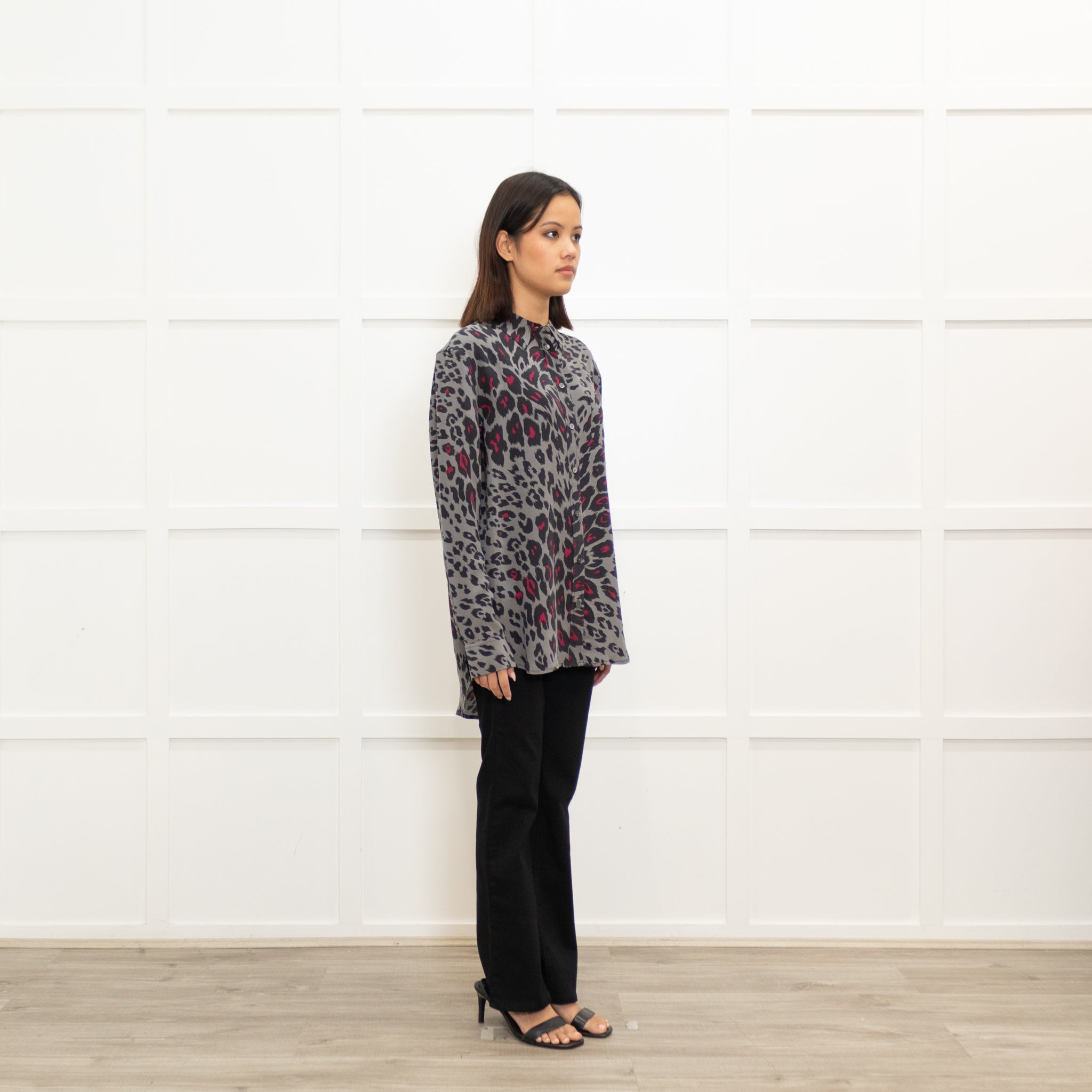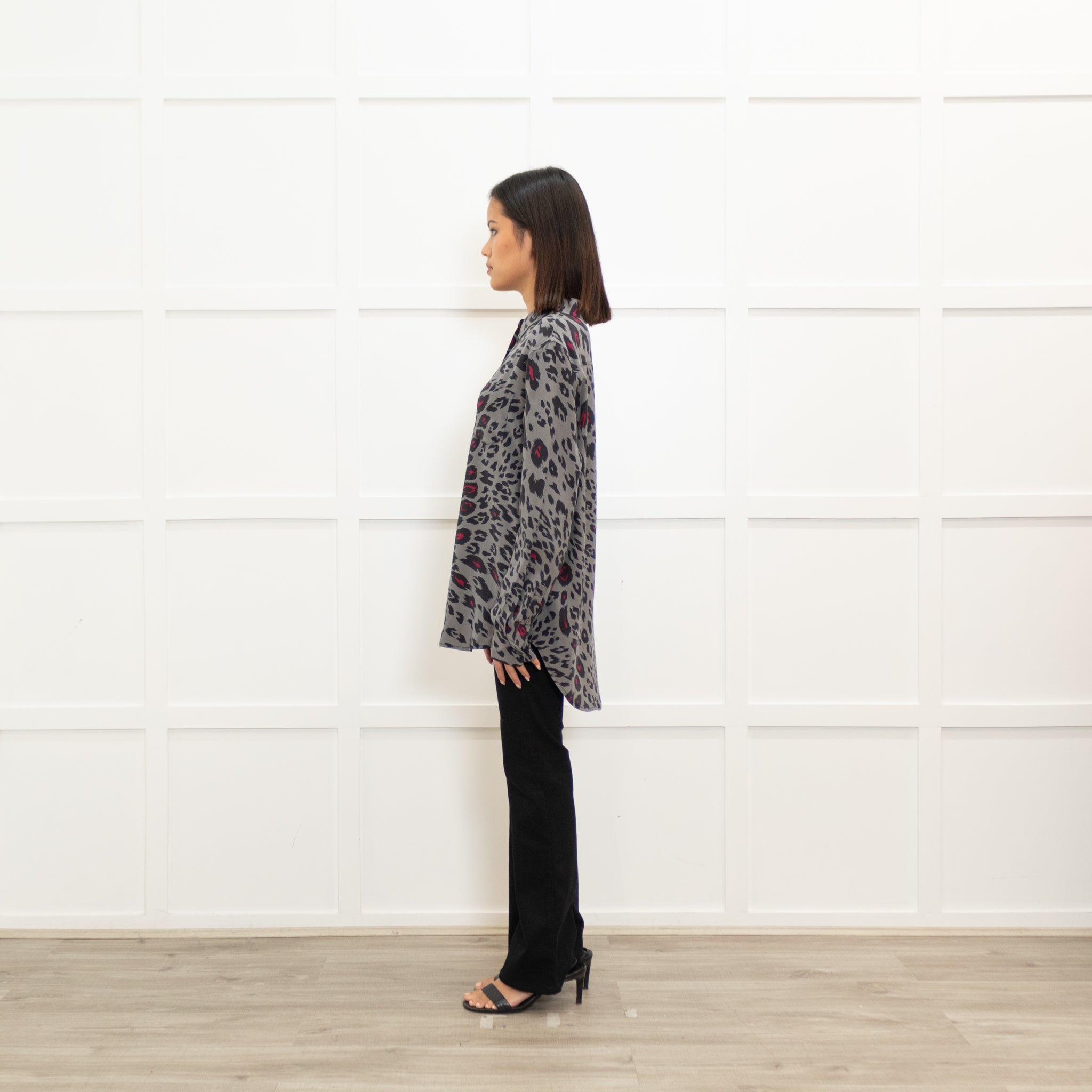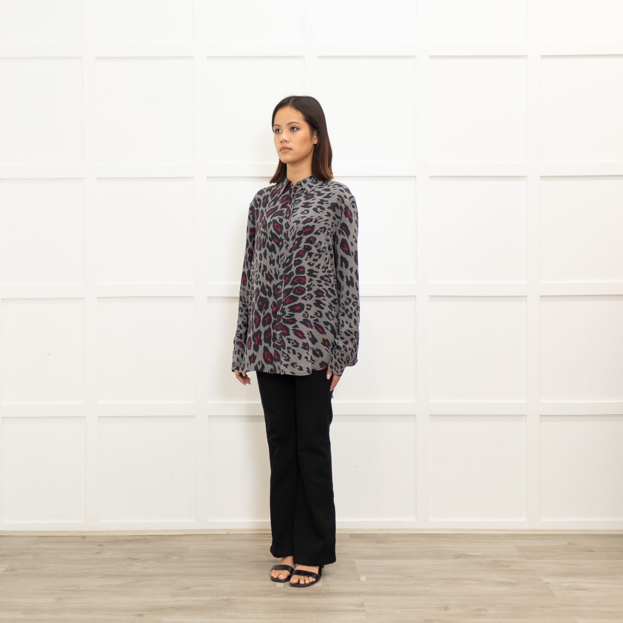 Equipment Grey and Fuschia Animal Print Silk Shirt