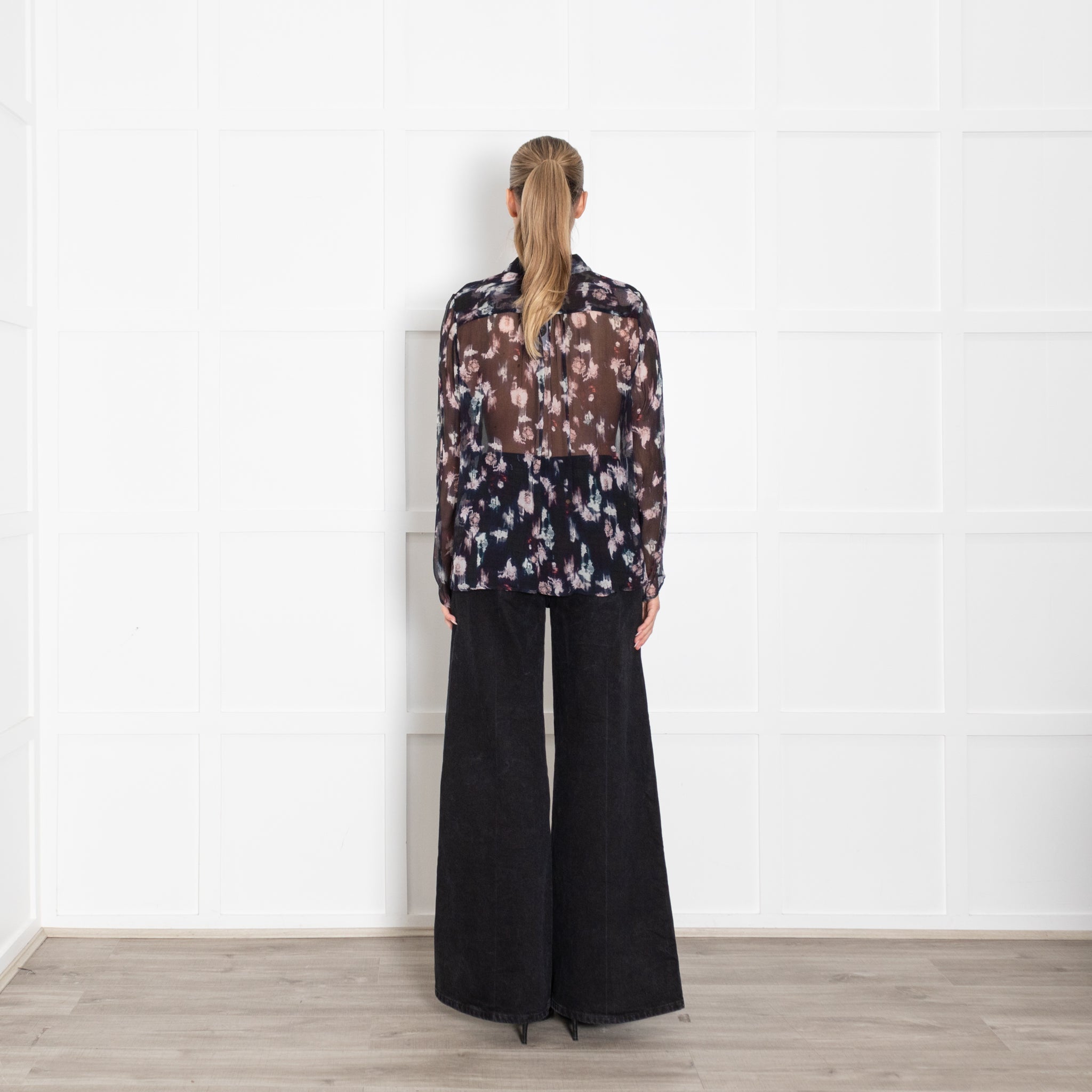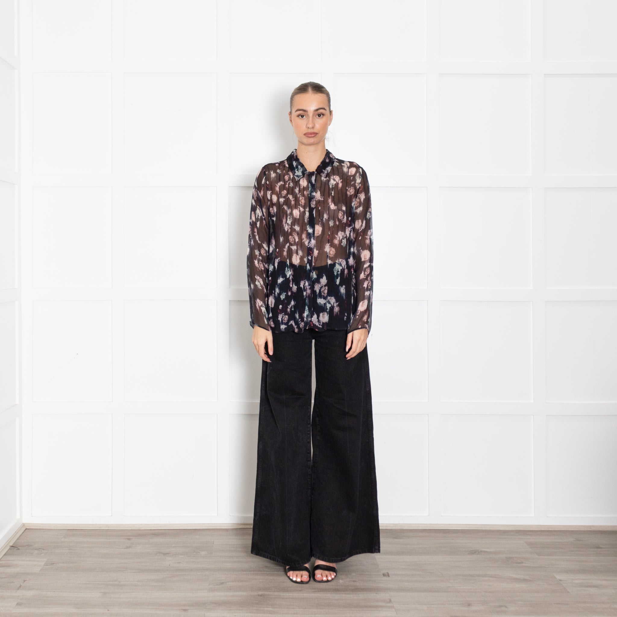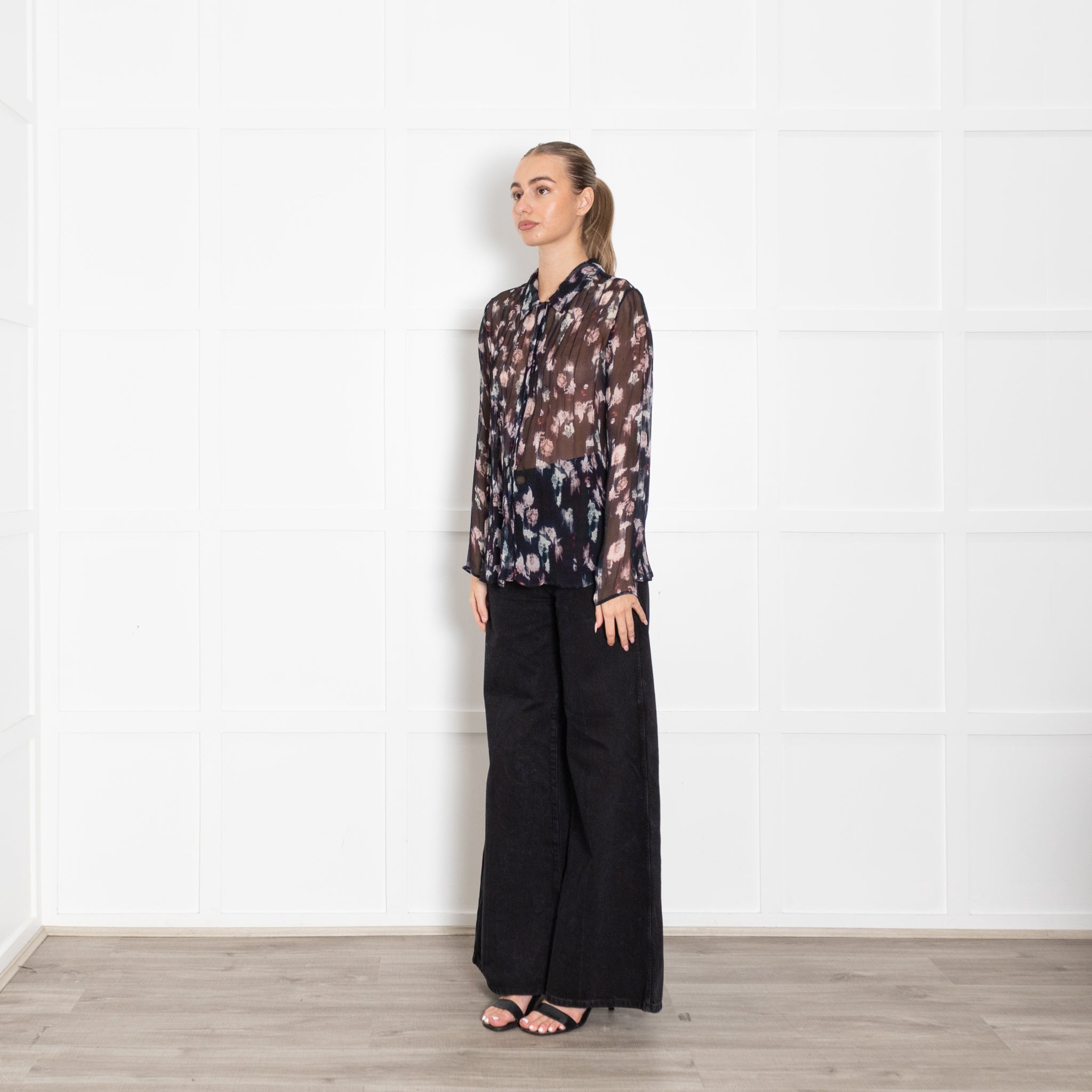 Lilly & Lionel Blue Chiffon Blouse With Pink Flowers