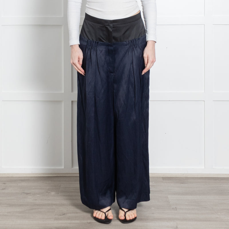 Roksanda Black Royal Blue Satin Side Stripe Wide Leg Trousers