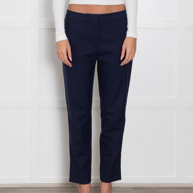 Wyse Navy Crop Trouser With Satin Side Stripe