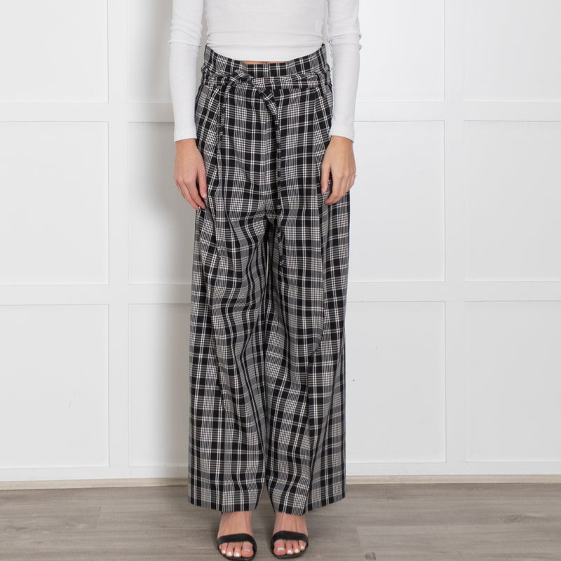 Weekend Maxmara Black And White Check Palazzo Trouser