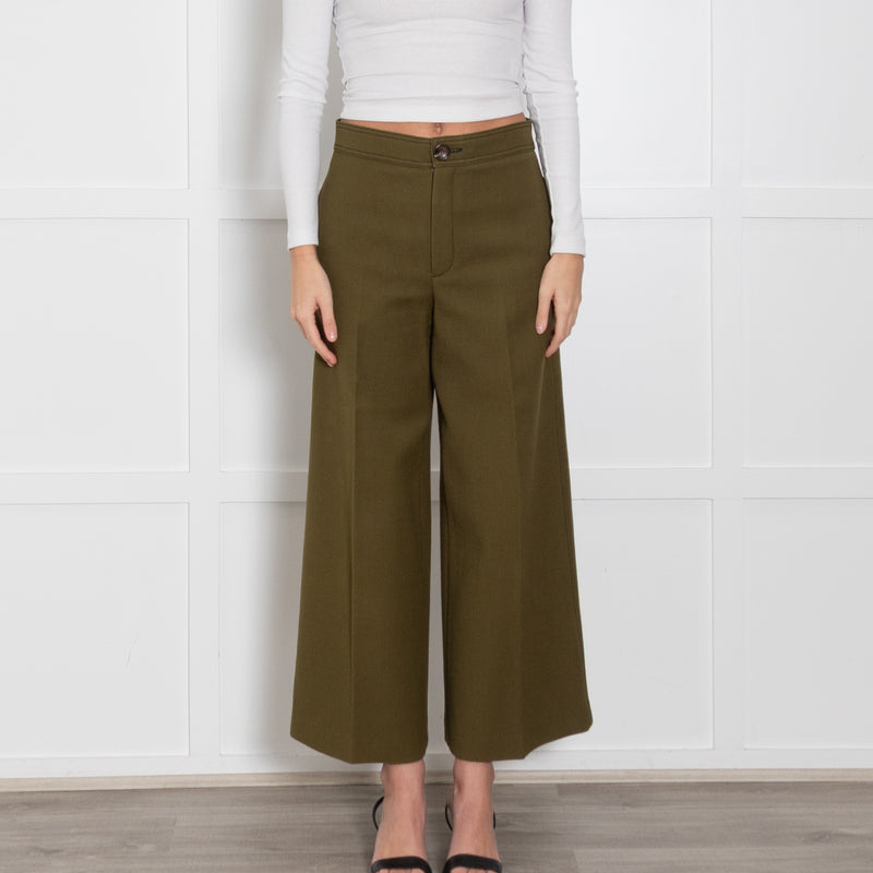 Joseph Olive Green Wide Leg Crop Twill Trousers