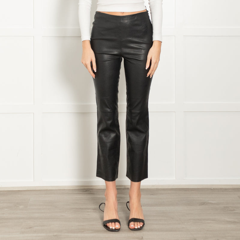 Sezane Black Stretchy Leather Straight Leg Trousers