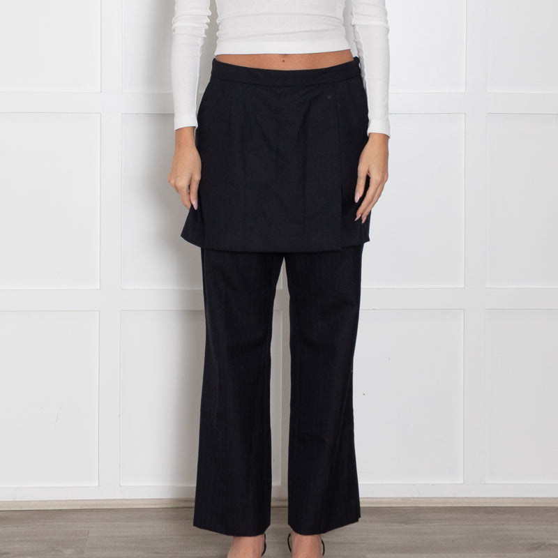 Dries Van Noten Black Self Stripe Trouser With Over Skirt