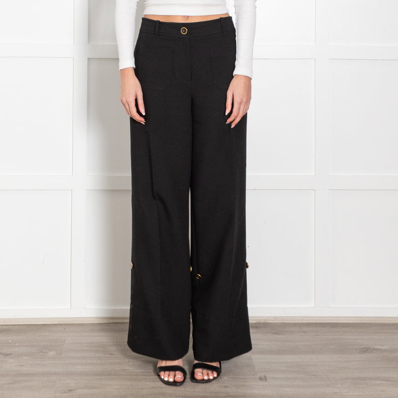 Me + Em Black Gold Button Optional Turn Up Wide Leg Trousers
