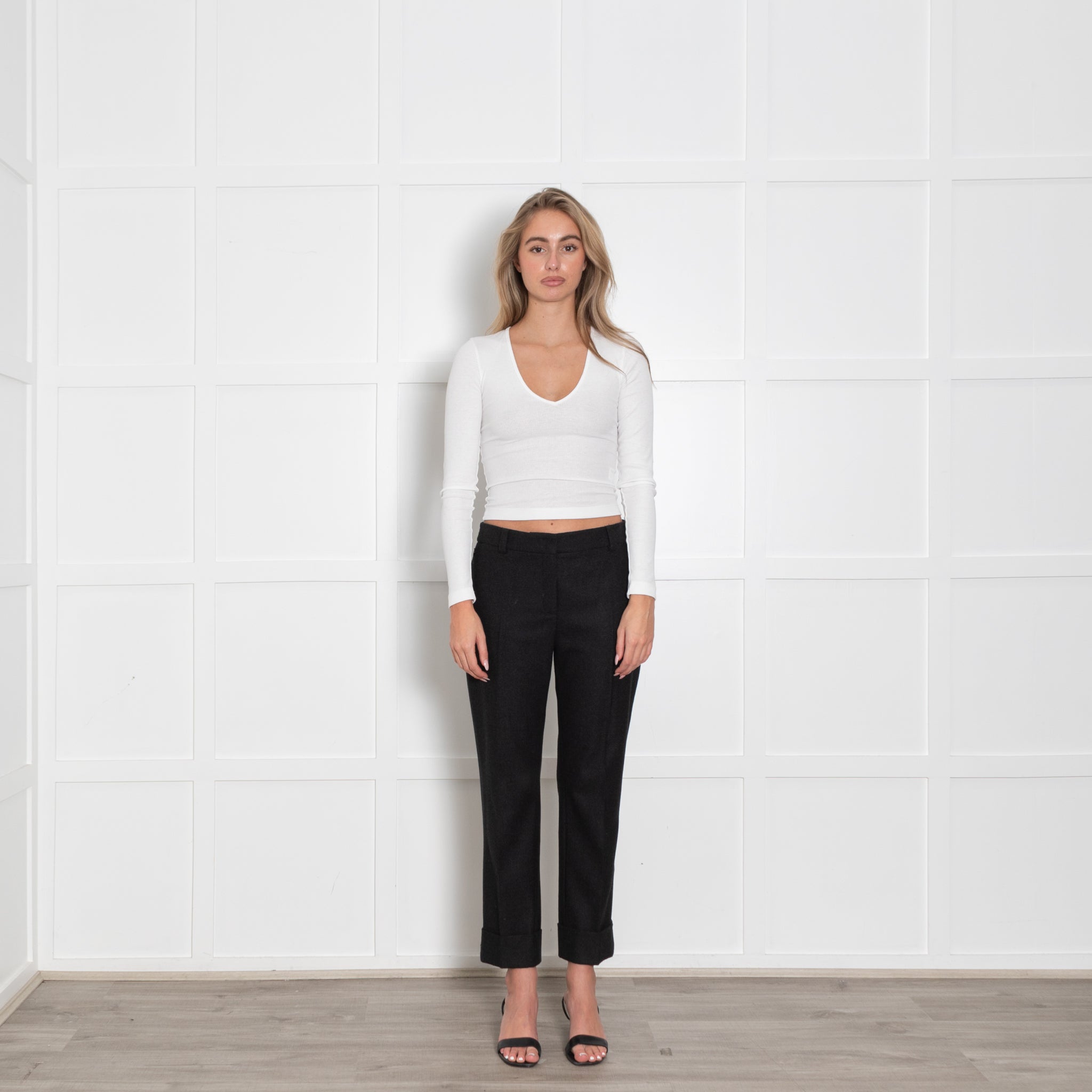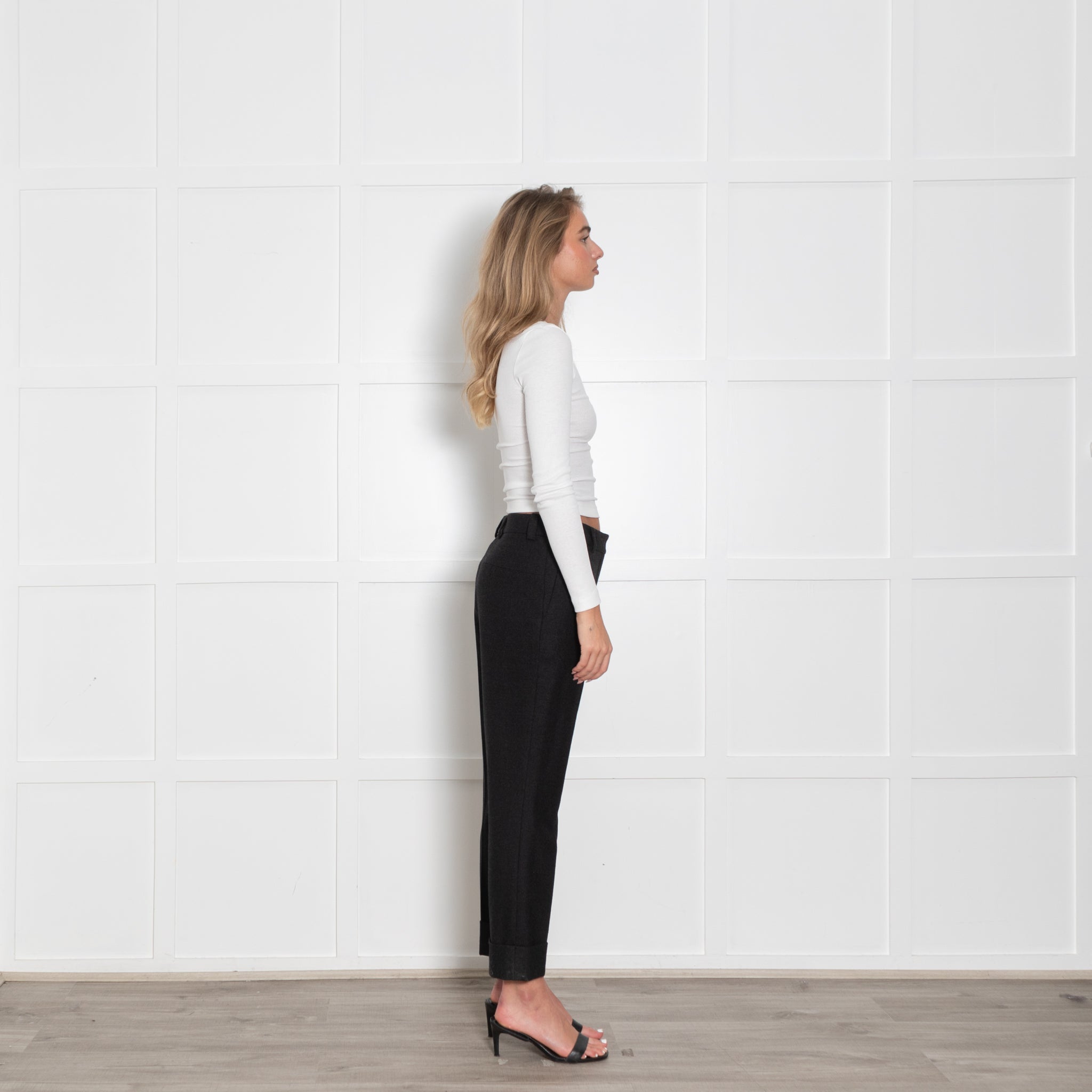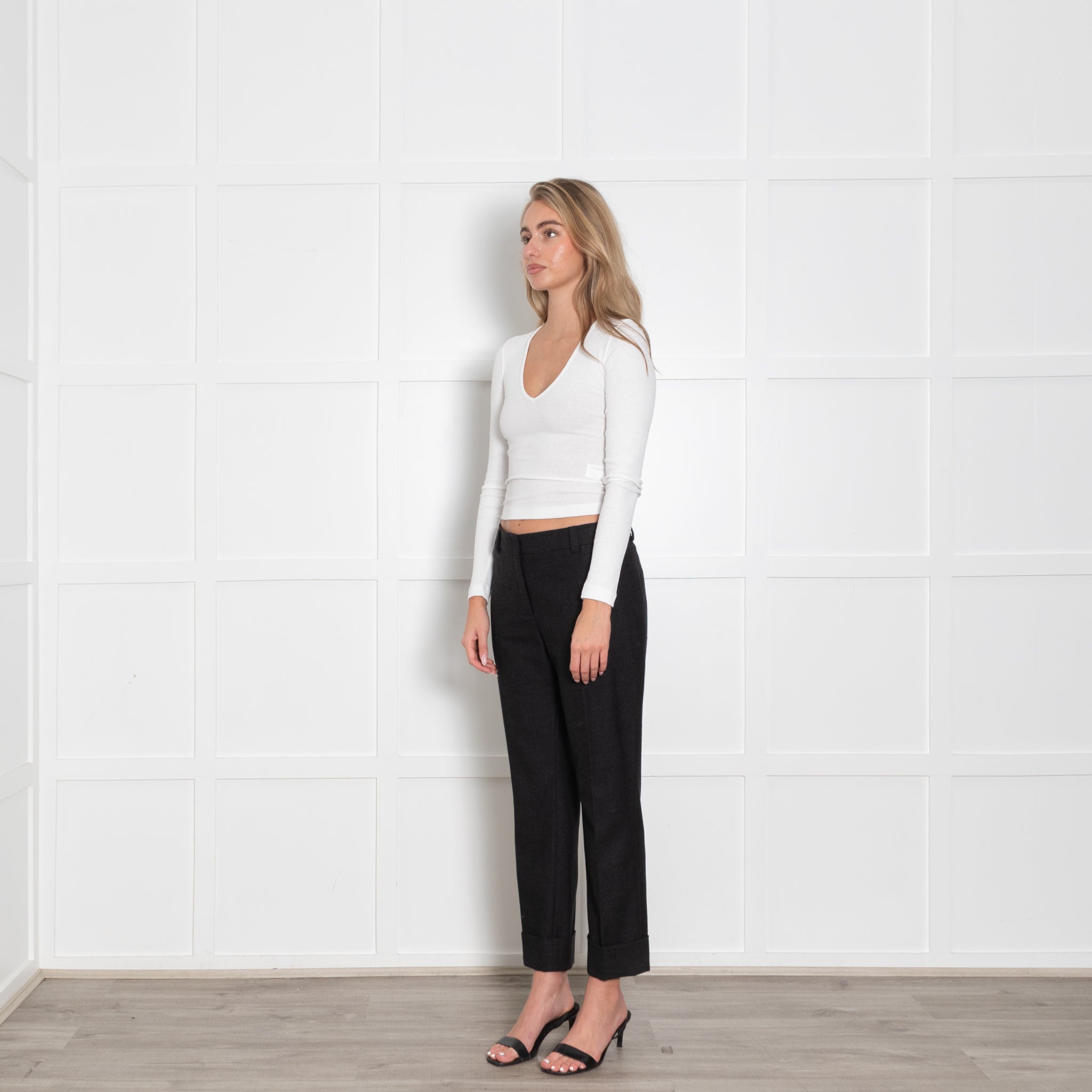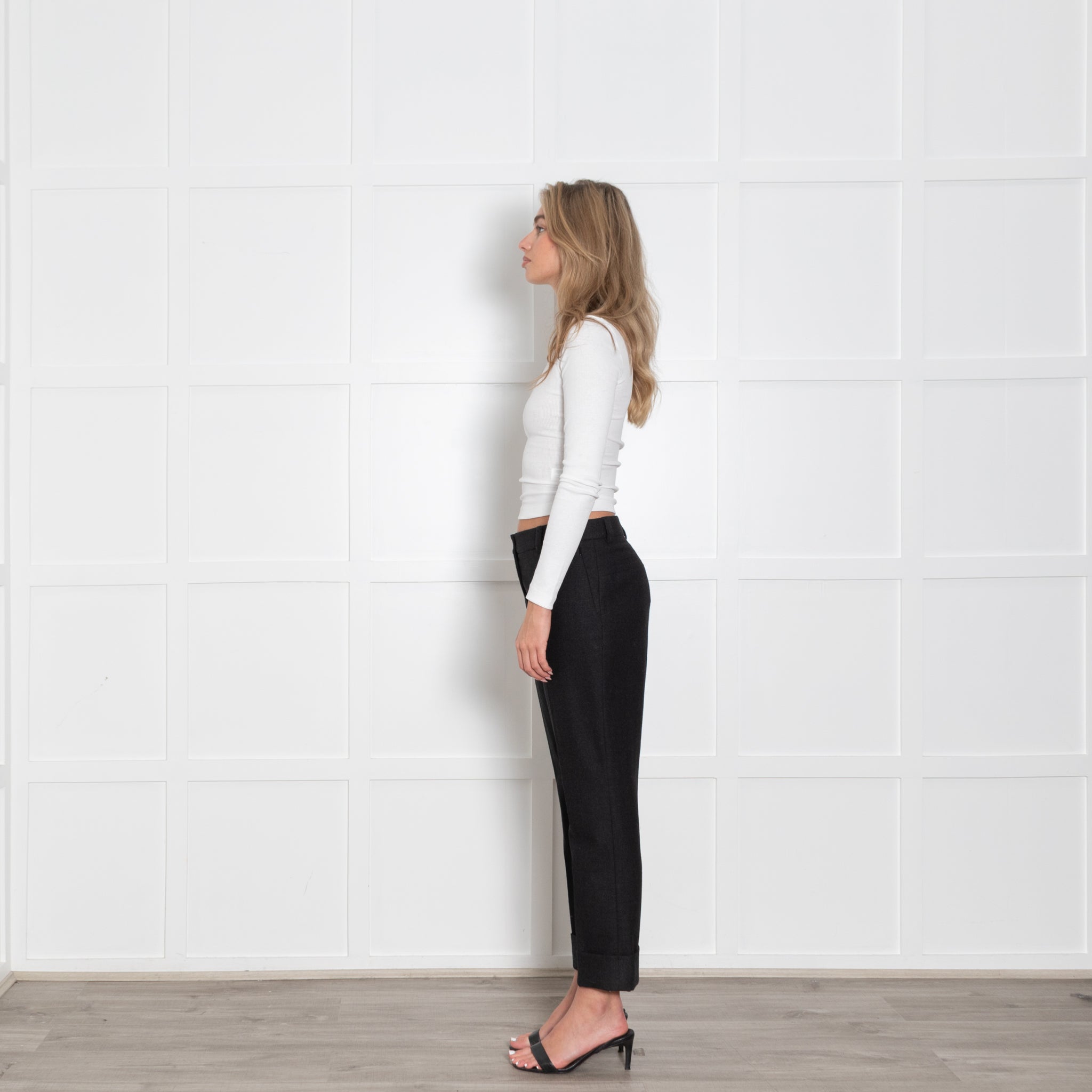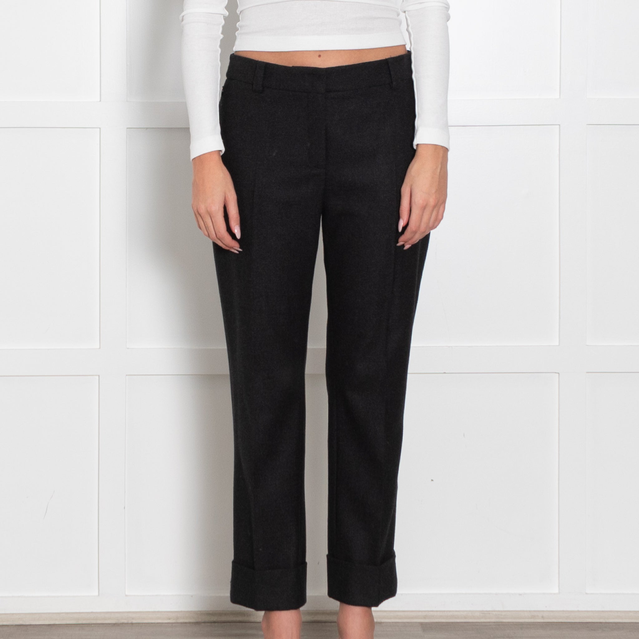 Akris dark grey trousers, crafted with a stunning wool knit fabric, featuring a turn-up design, with a belt loop, two side zipped pockets and a front zip and clasp closure.