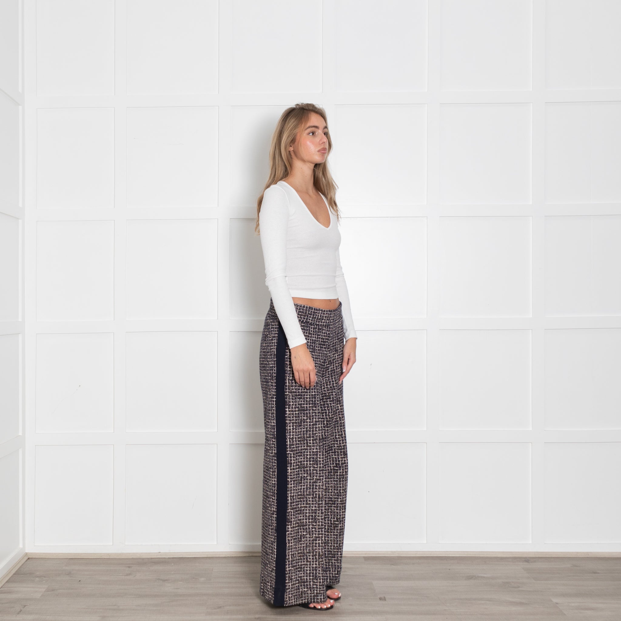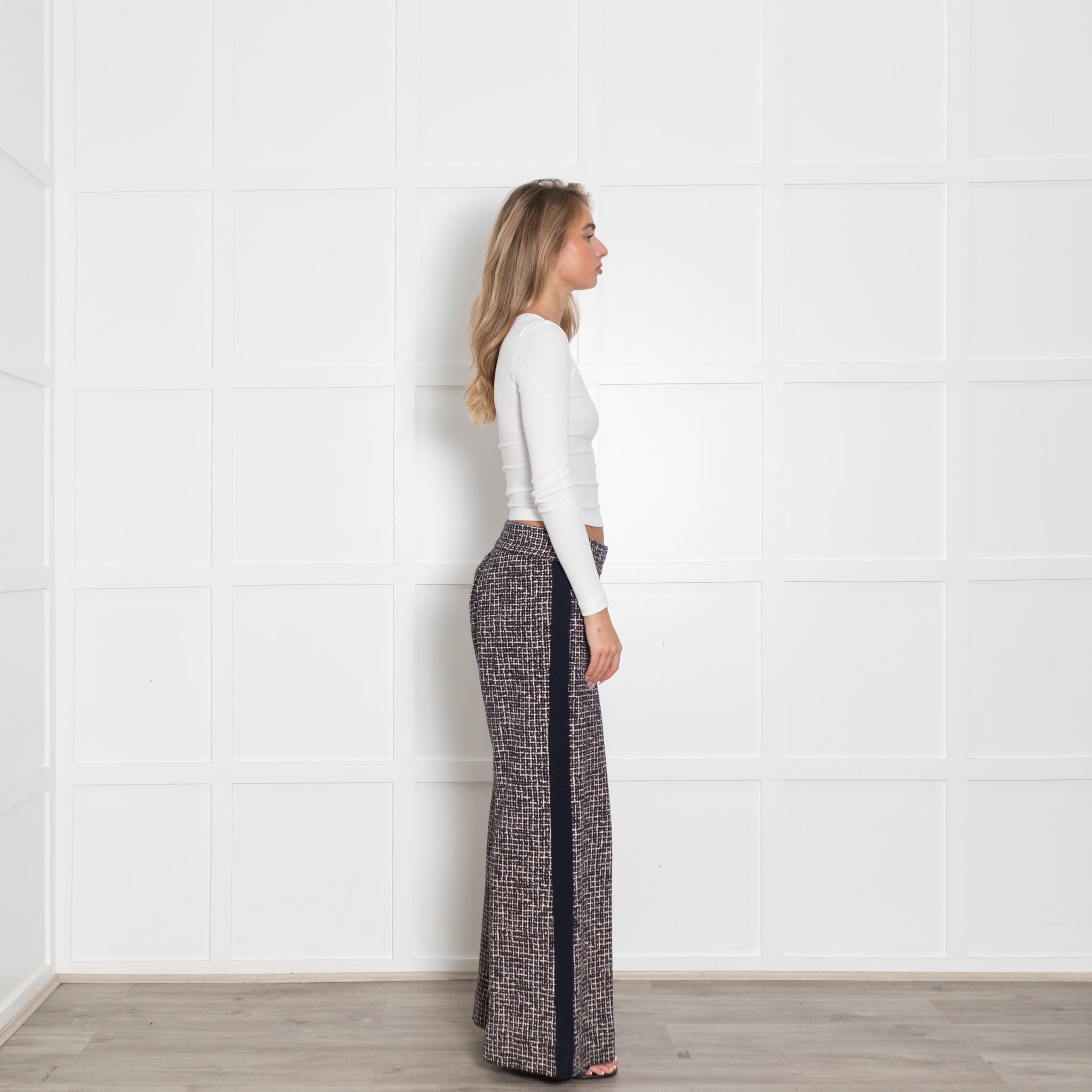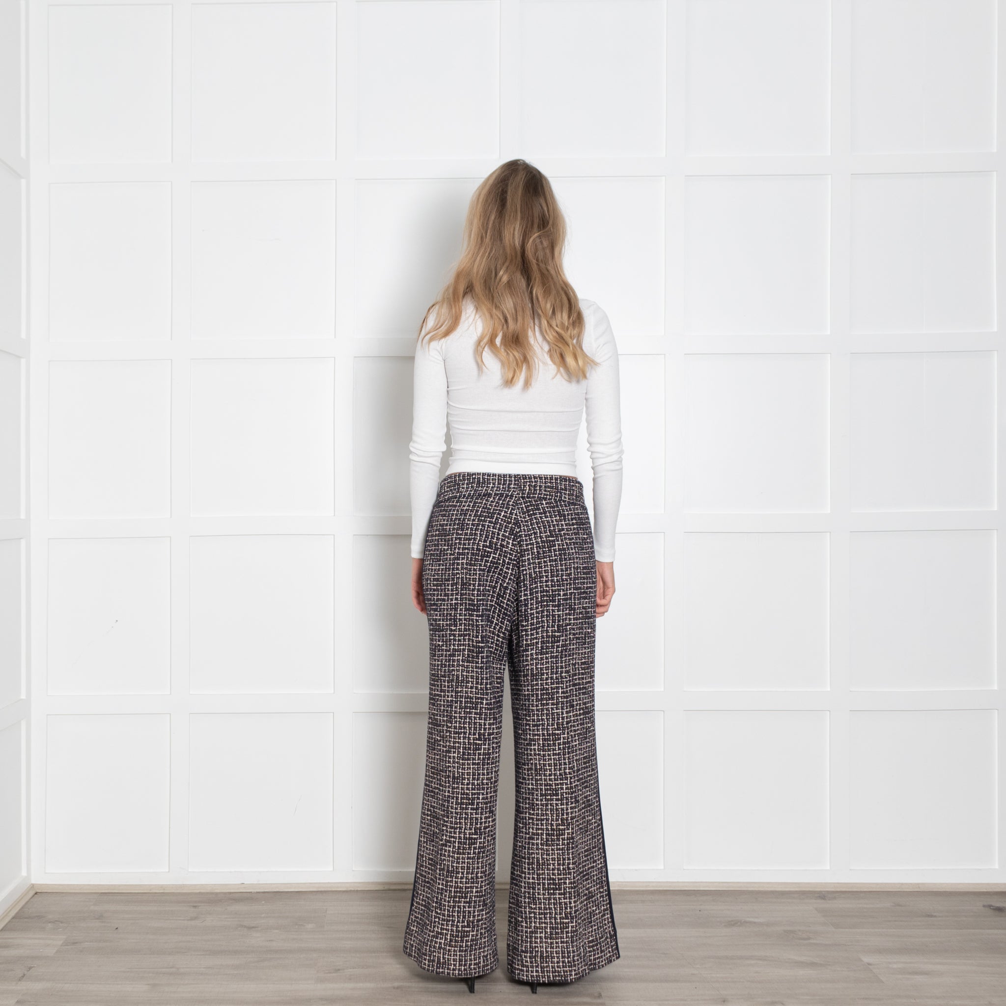 Me+Em Navy Cream Gold Lurex Tweedy Side Stripe Wide LegTrousers
