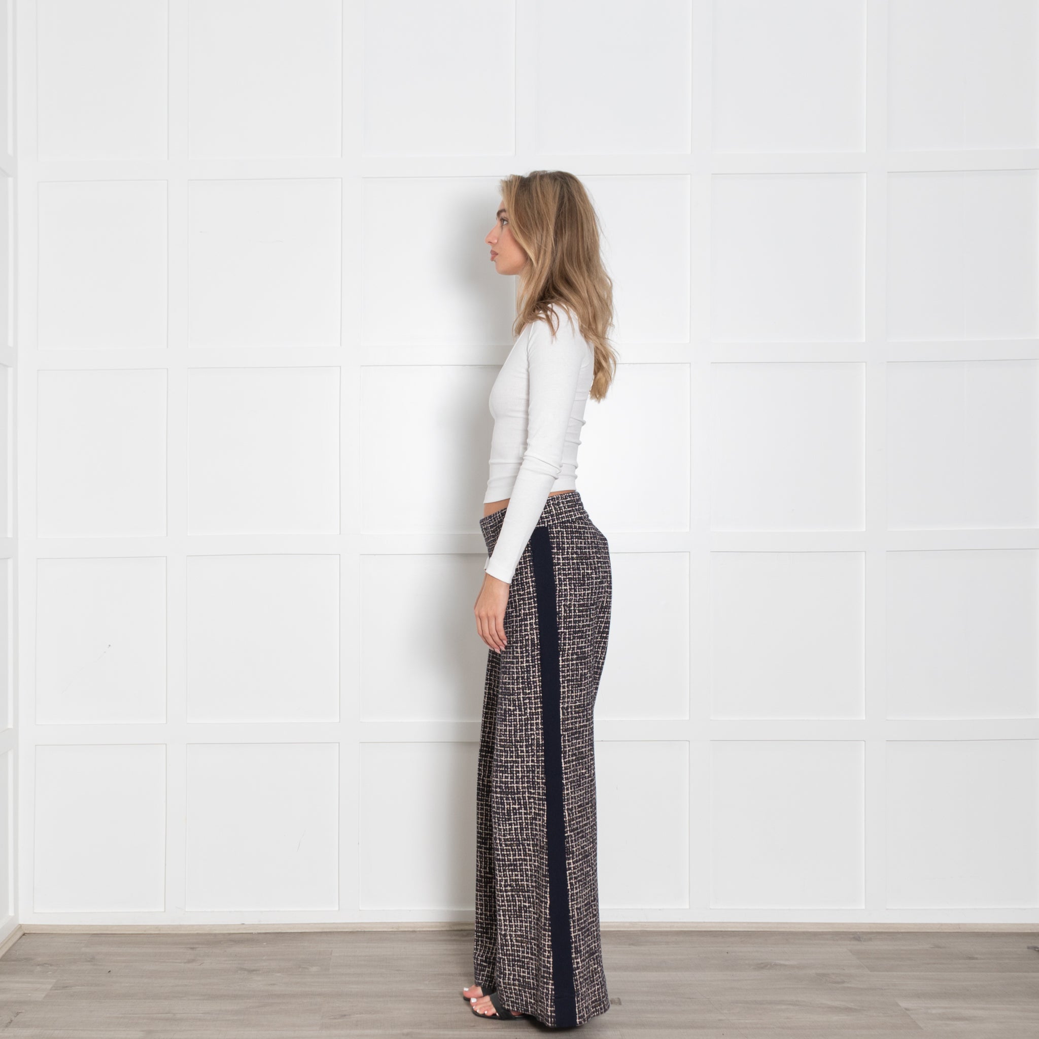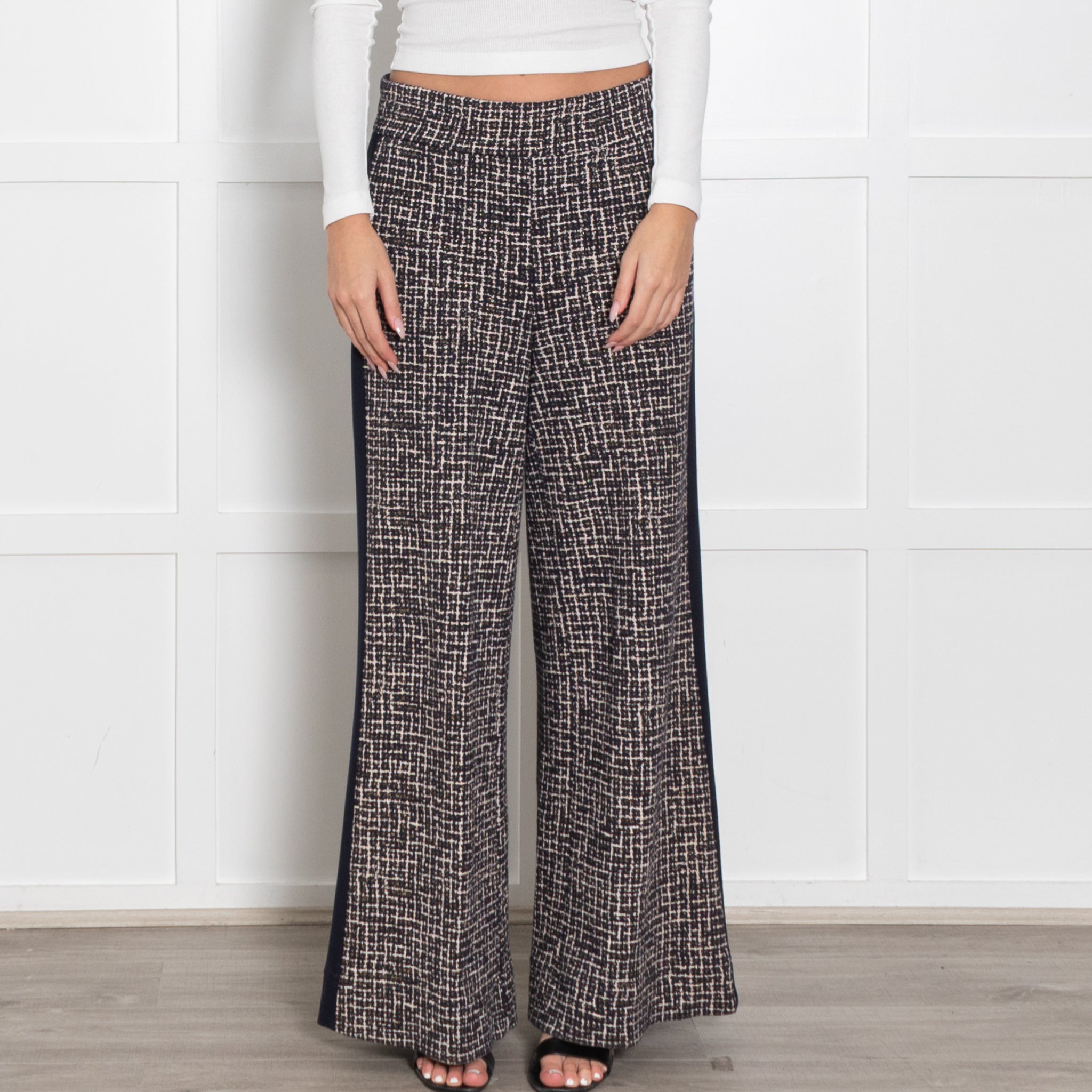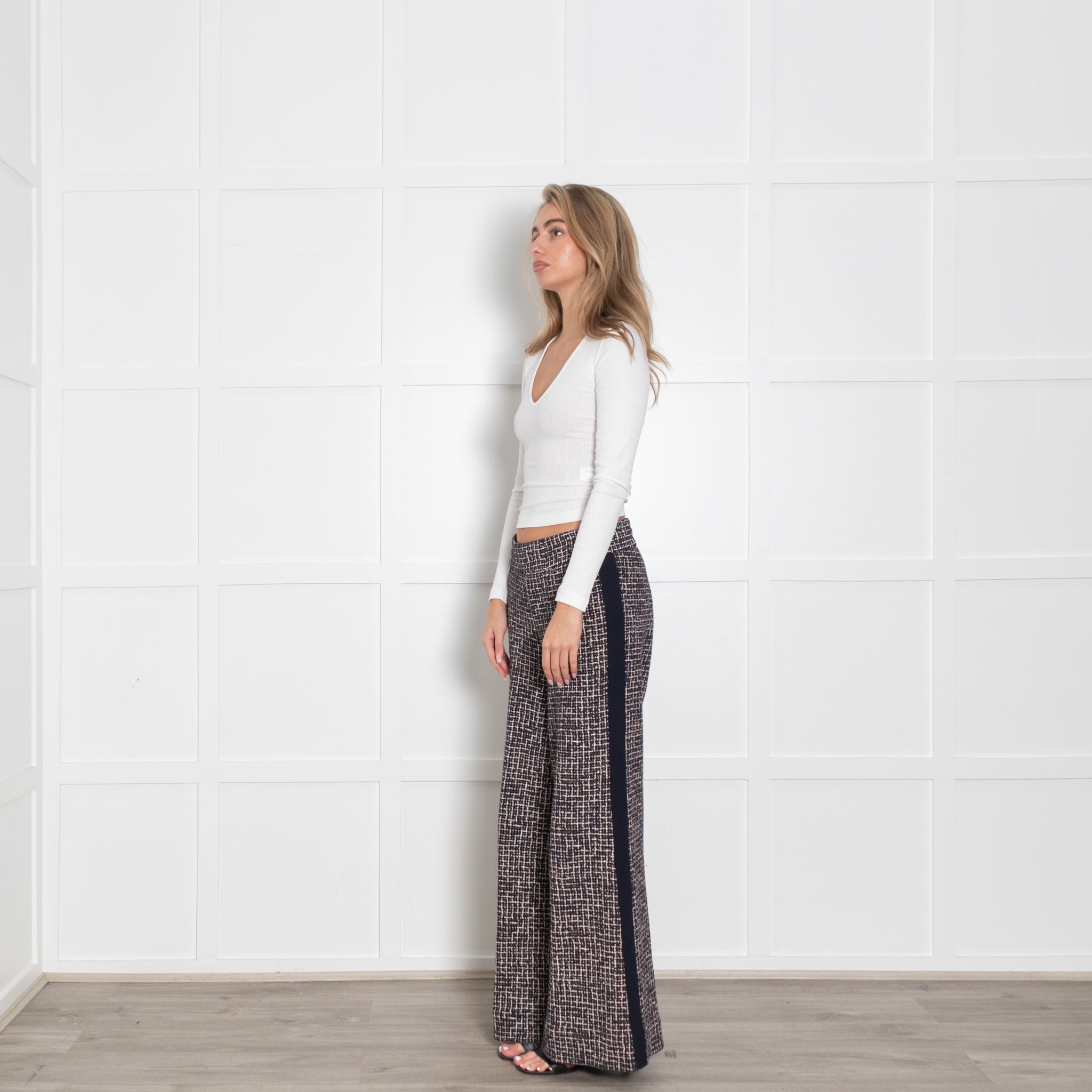 Me+Em Navy Cream Gold Lurex Tweedy Side Stripe Wide LegTrousers