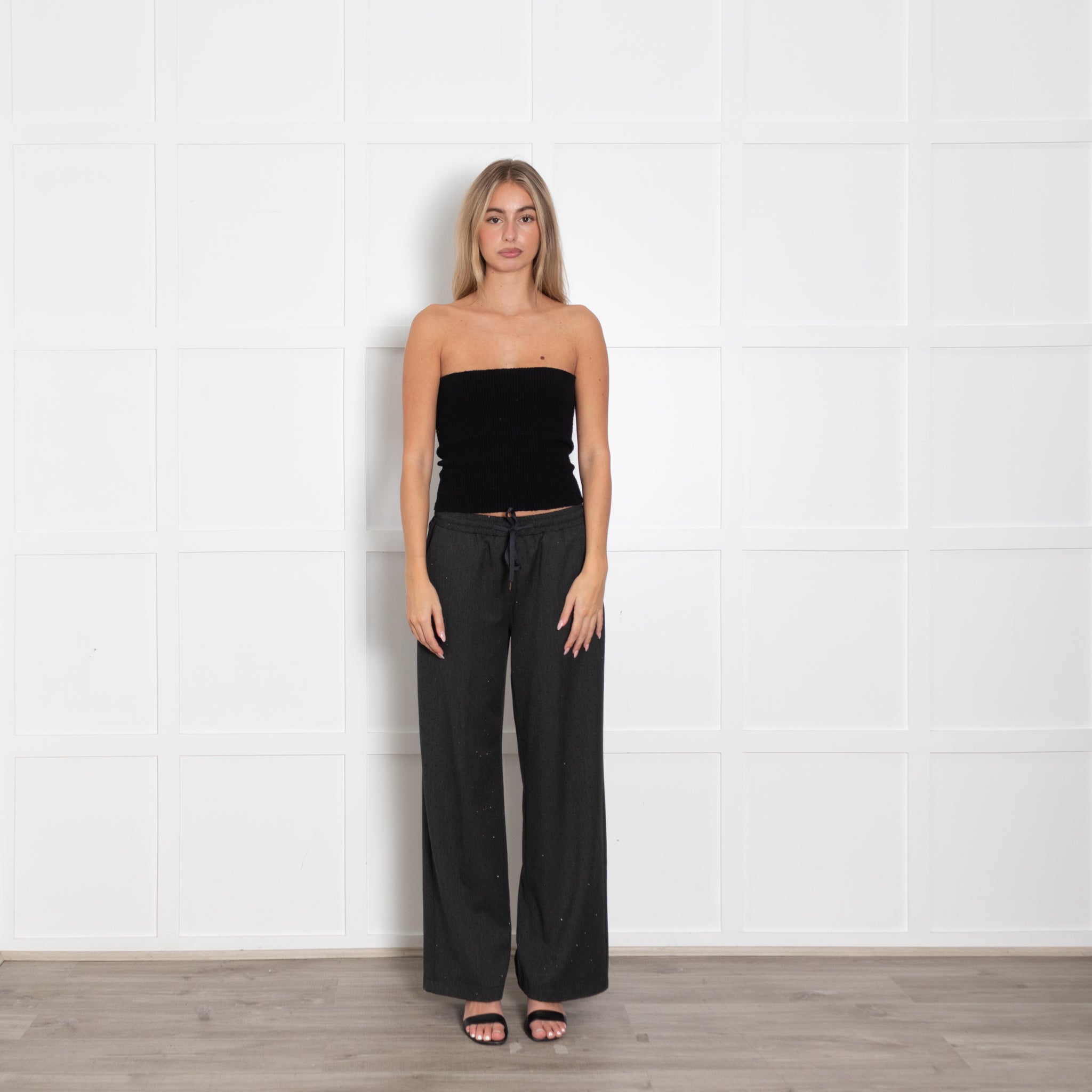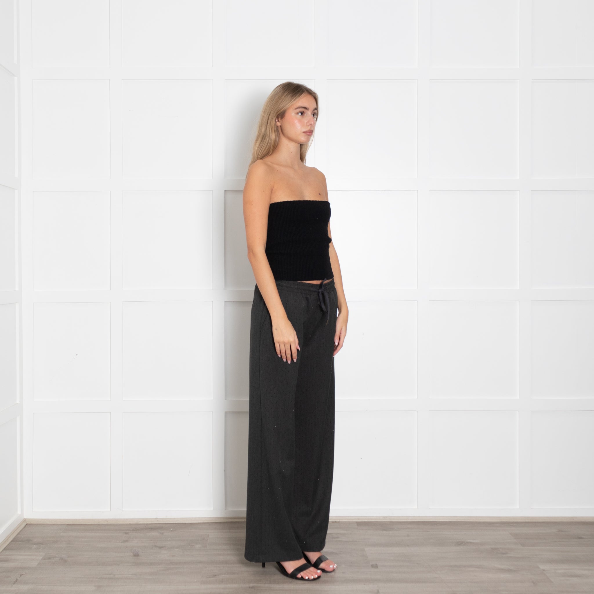 Phillip Lim grey joggers, featuring a stunning smart pin-striped design, with a gorgeous satin gathered hem, two side pockets and a drawstring adjustable front tie.