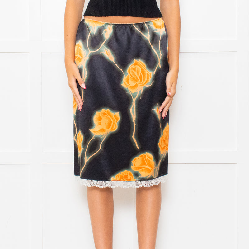 Meryll Rogge Black Orange Floral Satin Skirt