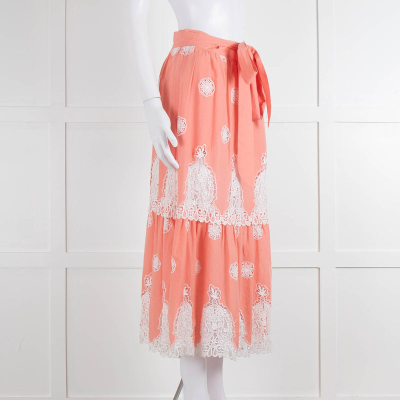 Miguelina Peach Skirt (has belt) With White Broderie Inserts