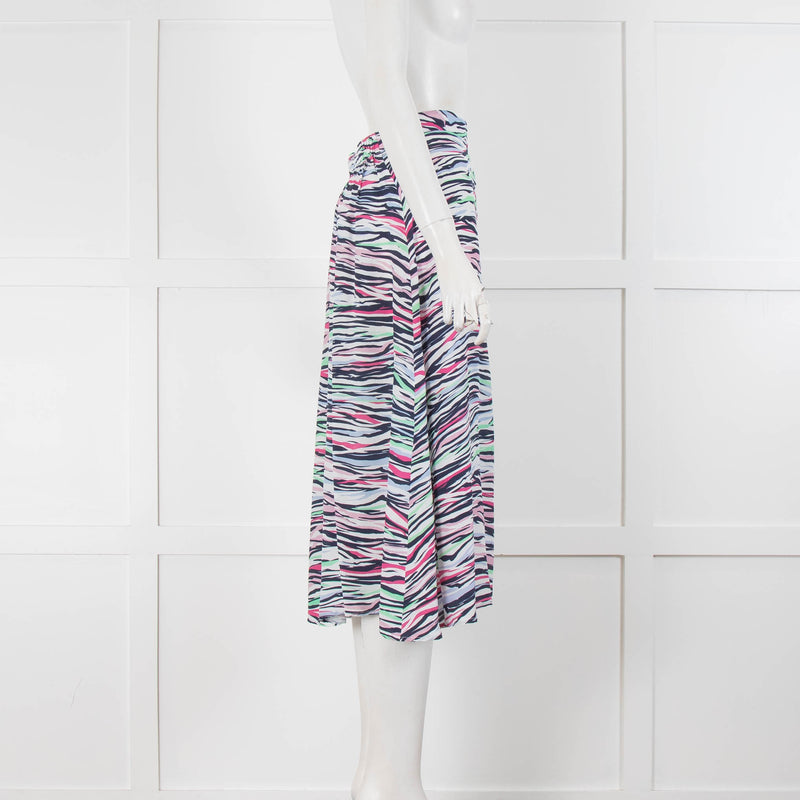 Mercy Delta White Blue Pink Green Zebra Print Midi Skirt