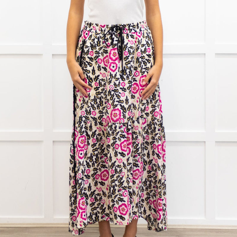 Me + Em White Floral Drawstring Waist Gypsy Skirt