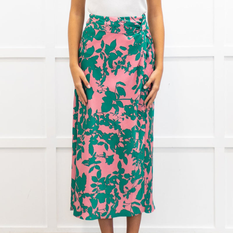 Me + Em Pink and Green Floral Print Twist Waist Skirt