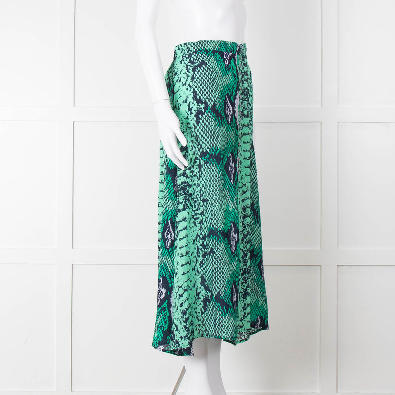 Mercy Delta Green Navy Snake Print Button Front Maxi Skirt