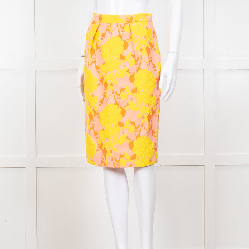Miu Miu Peach Yellow Floral Brocade Pencil Skirt