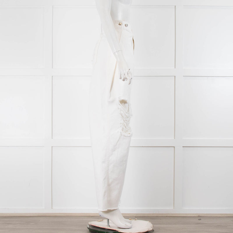 The Frankie Shop Cream Distressed Frayed Hem Jeans