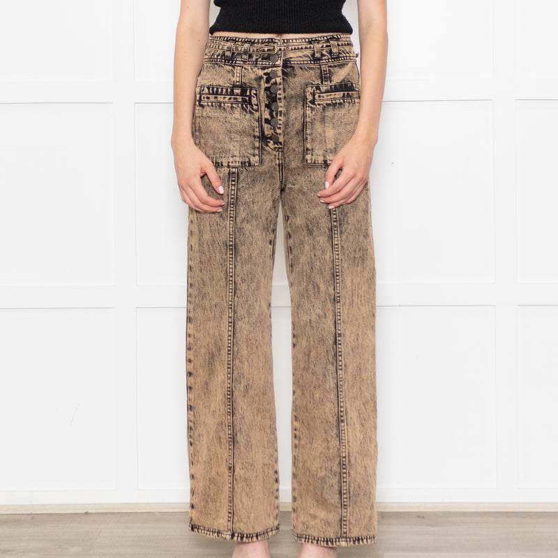 Ulla Johnson Pink Black Wash Front Pocket Belted Jeans