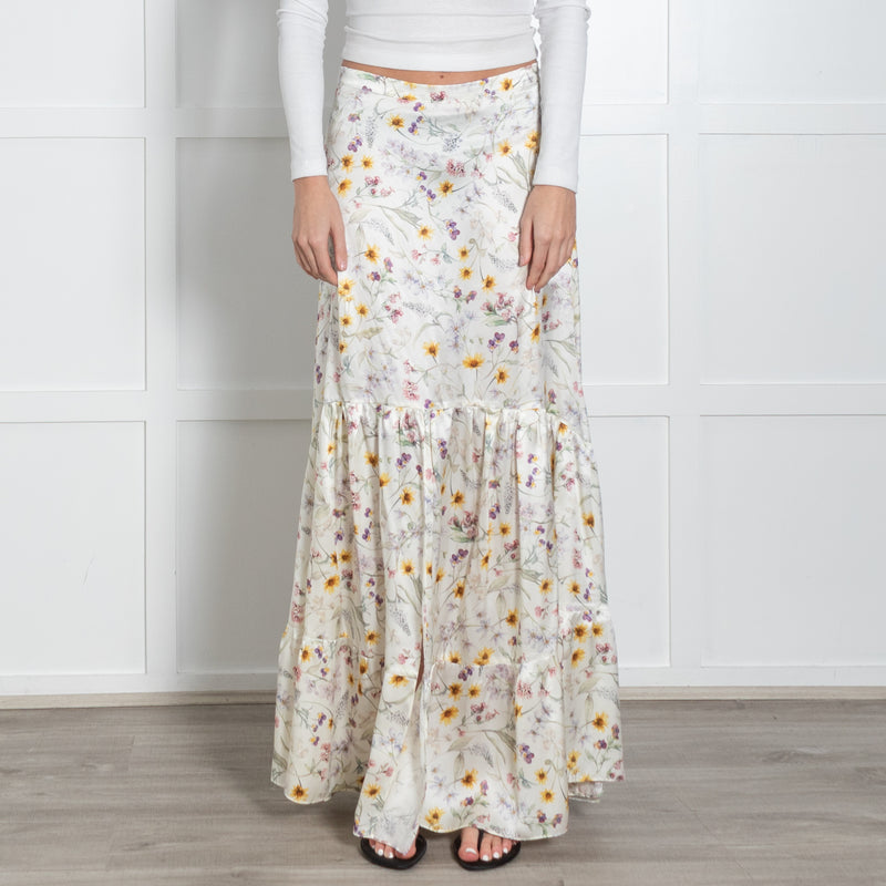 Ridley Cream Pink Floral Tiered Maxi Skirt