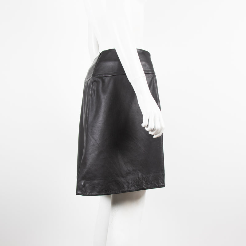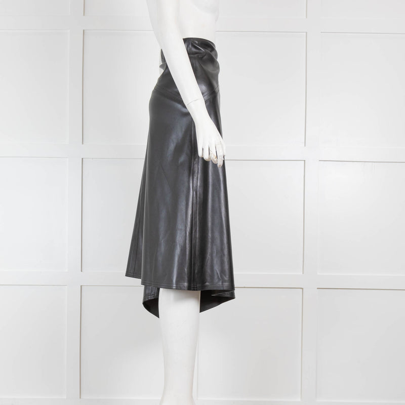 Victor Alfaro Black Faux Leather Asymmetrical Skirt