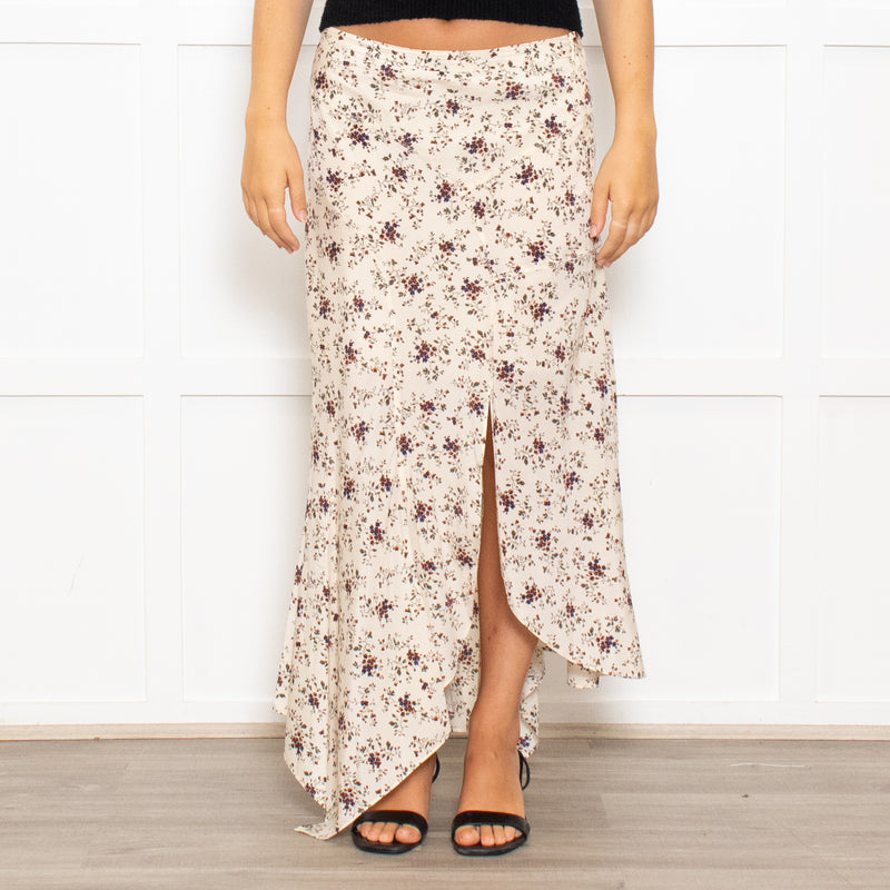 Veronica Beard Silk Hankerchief Floral Cream Midi Skirt
