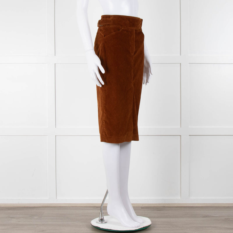 True Royal Mustard Brown Corduroy Pencil Skirt