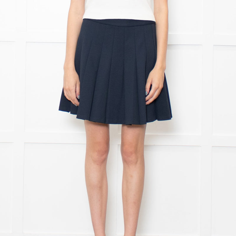 Theory Navy Pleated Textured Fabric Mini Skirt