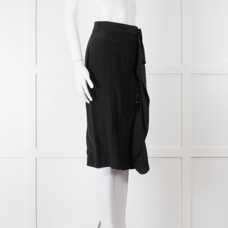 Yves Saint Laurent Black Silk Frill Detail Pencil Skirt