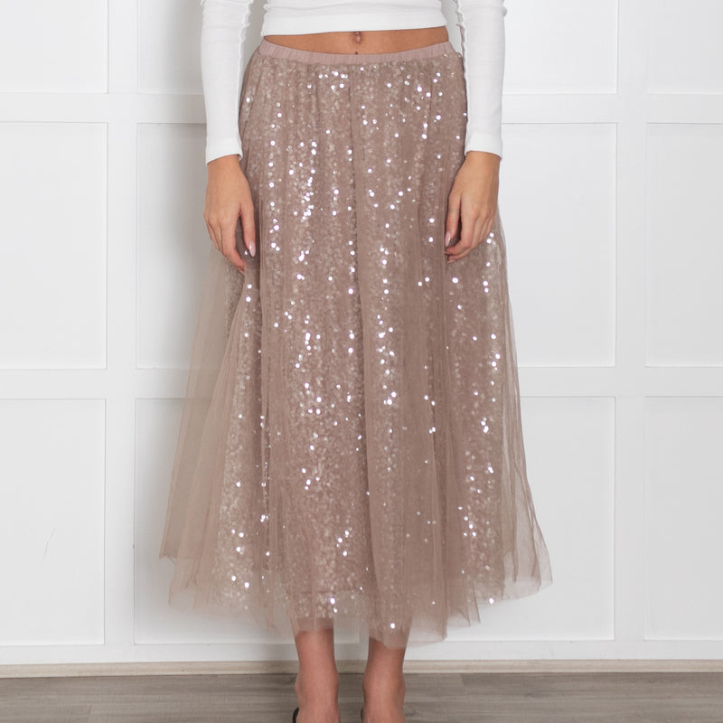 Wyse Nude Sequin Skirt With Tulle Overlay