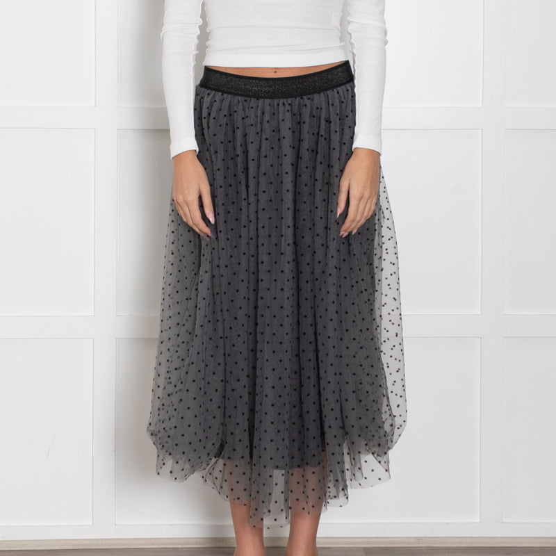 Wyse Lou Lou Tulle Grey Skirt With Black Polka Dots