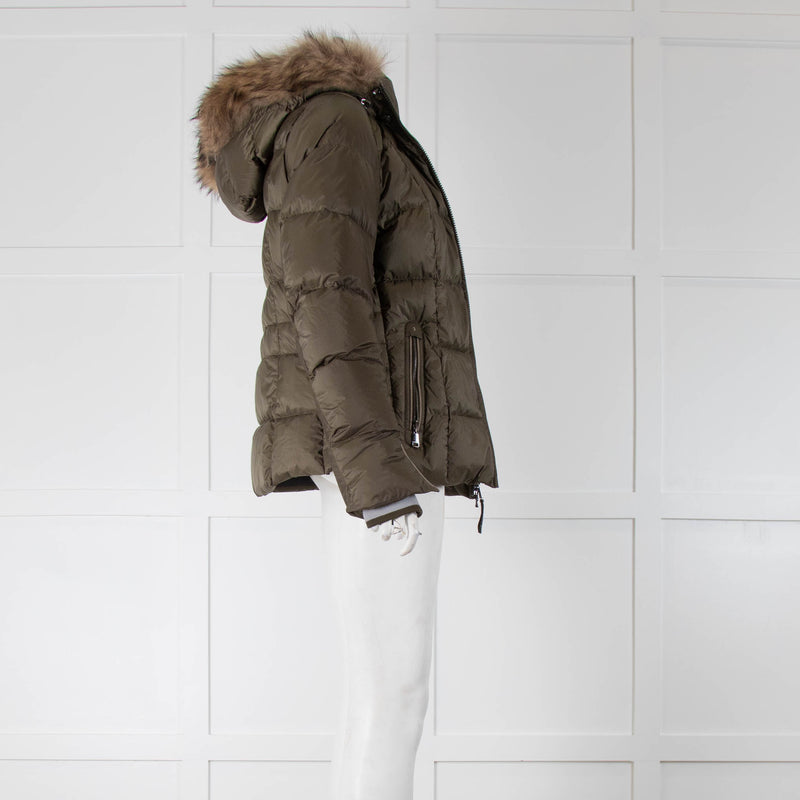 Bogner Khaki Padded Coat with Fur Hood