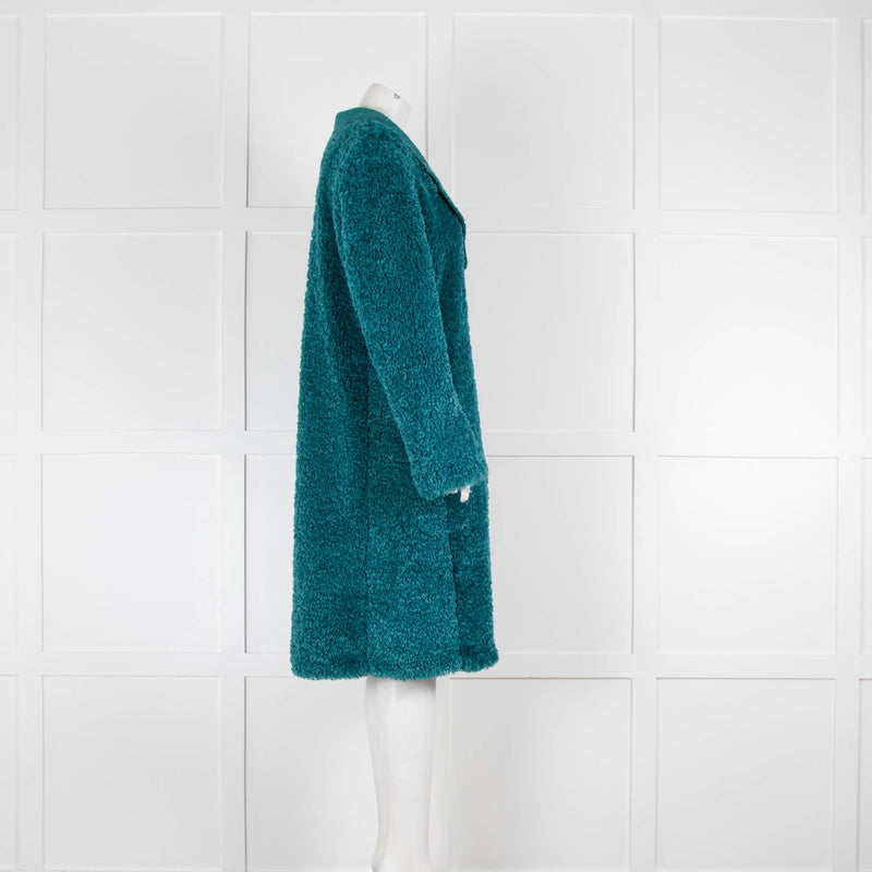 Boutique Moschino Teal Faux Fur Gold Button Coat