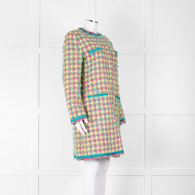 Boutique Moschino Green Pink Textured Weave Coat